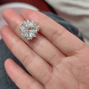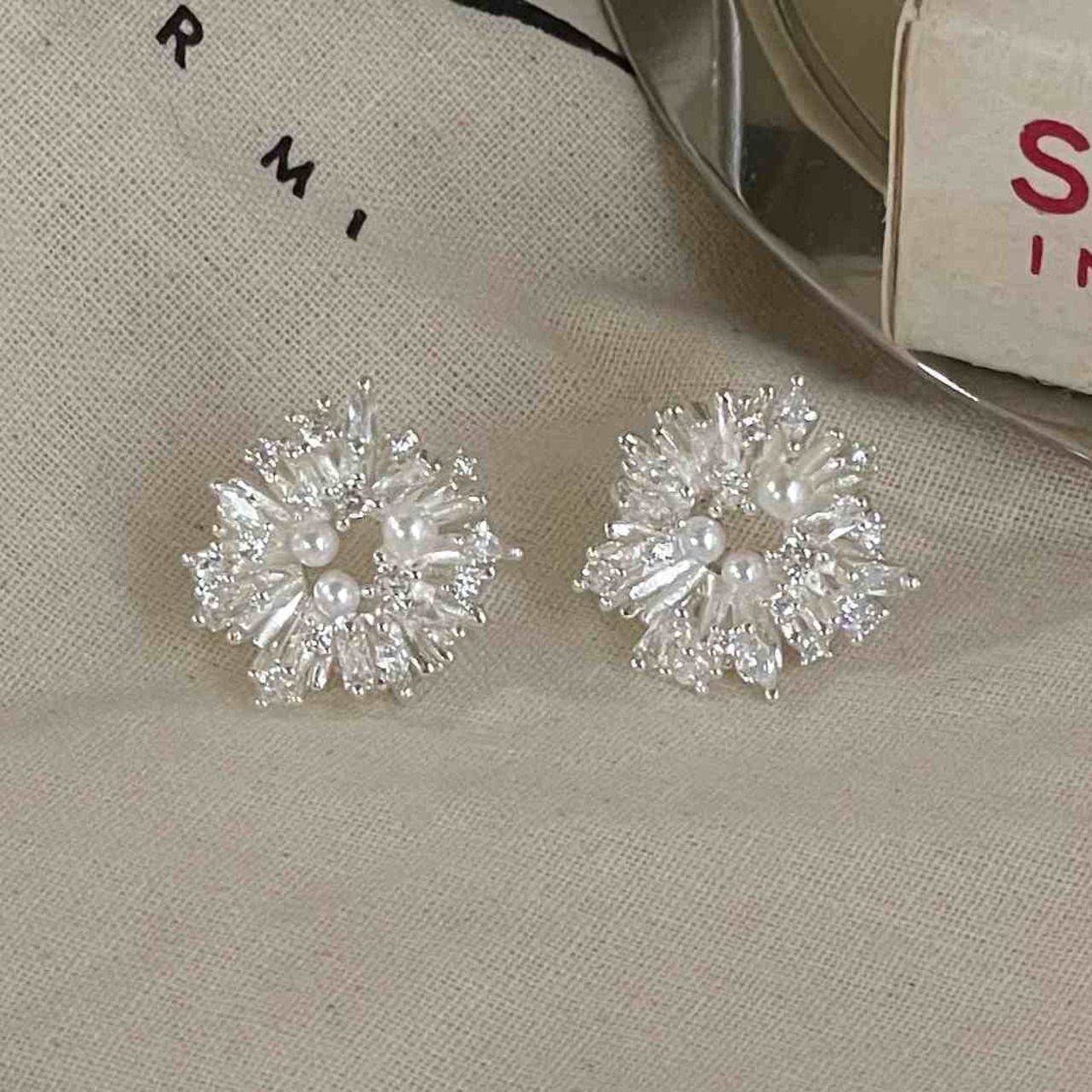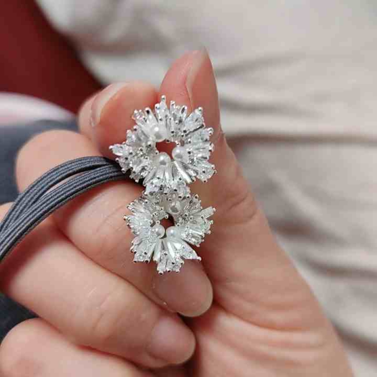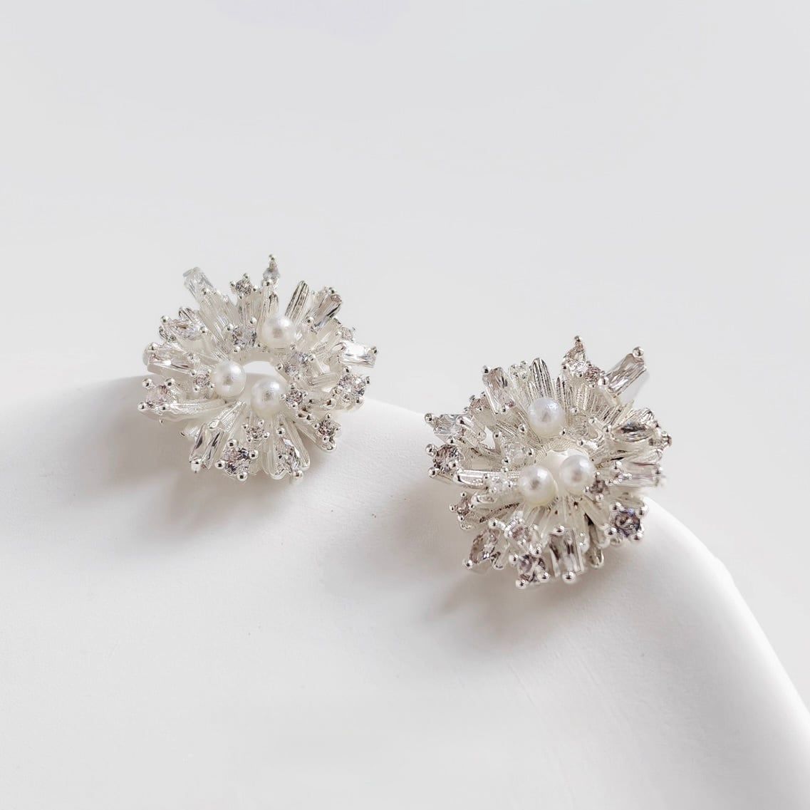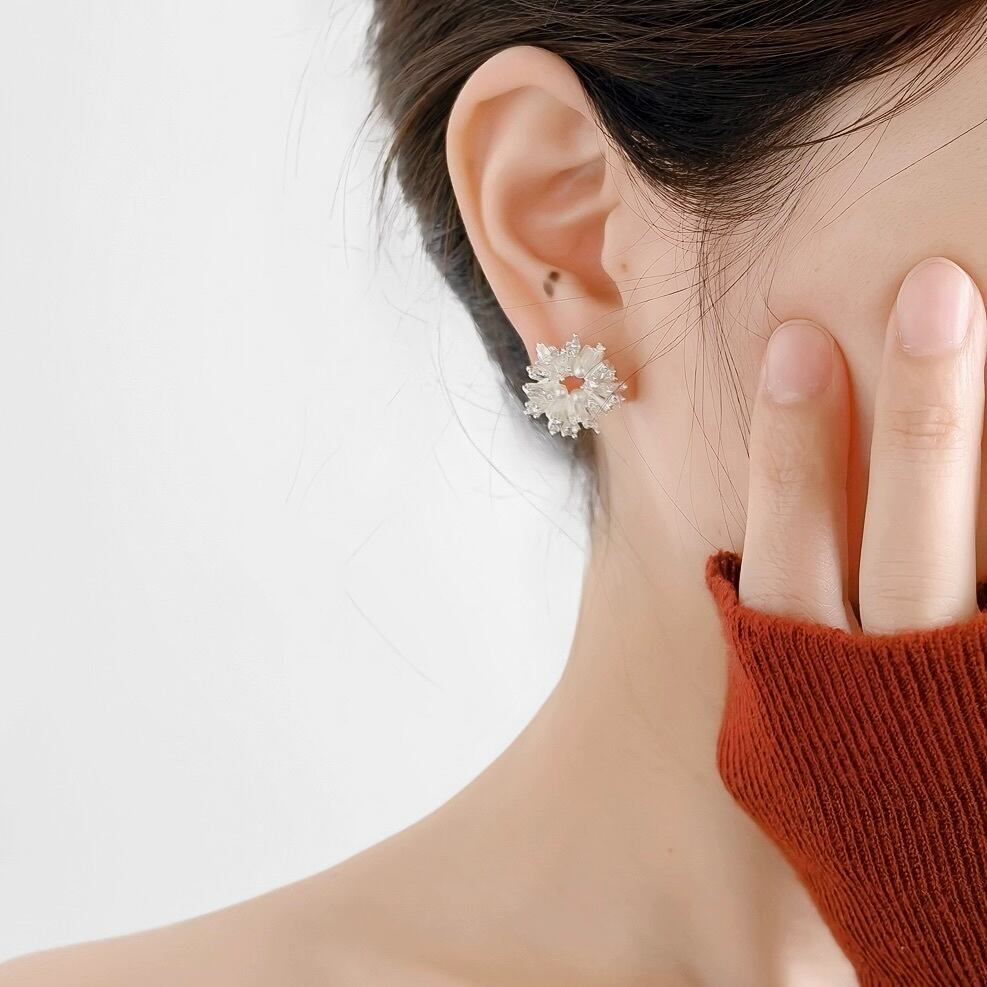 耳元にふわっと咲く雪の花のようなデザインは、顔まわりを明るく、上品に引き立ててくれます。