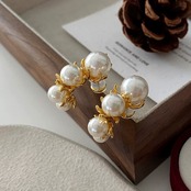 華やかすぎず、しかし確かな個性を添えるデザインは、日常にも特別なシーンにも自然に寄り添います。シンプルな装いにひとさじの輝きを添えたいときや、大切な人への贈り物にもぴったりな一品。自然のやさしさと洗練された品格が調和した、まさに大人のためのジュエリーです。・合金 金メッキ シルバー925ポスト 人工パール