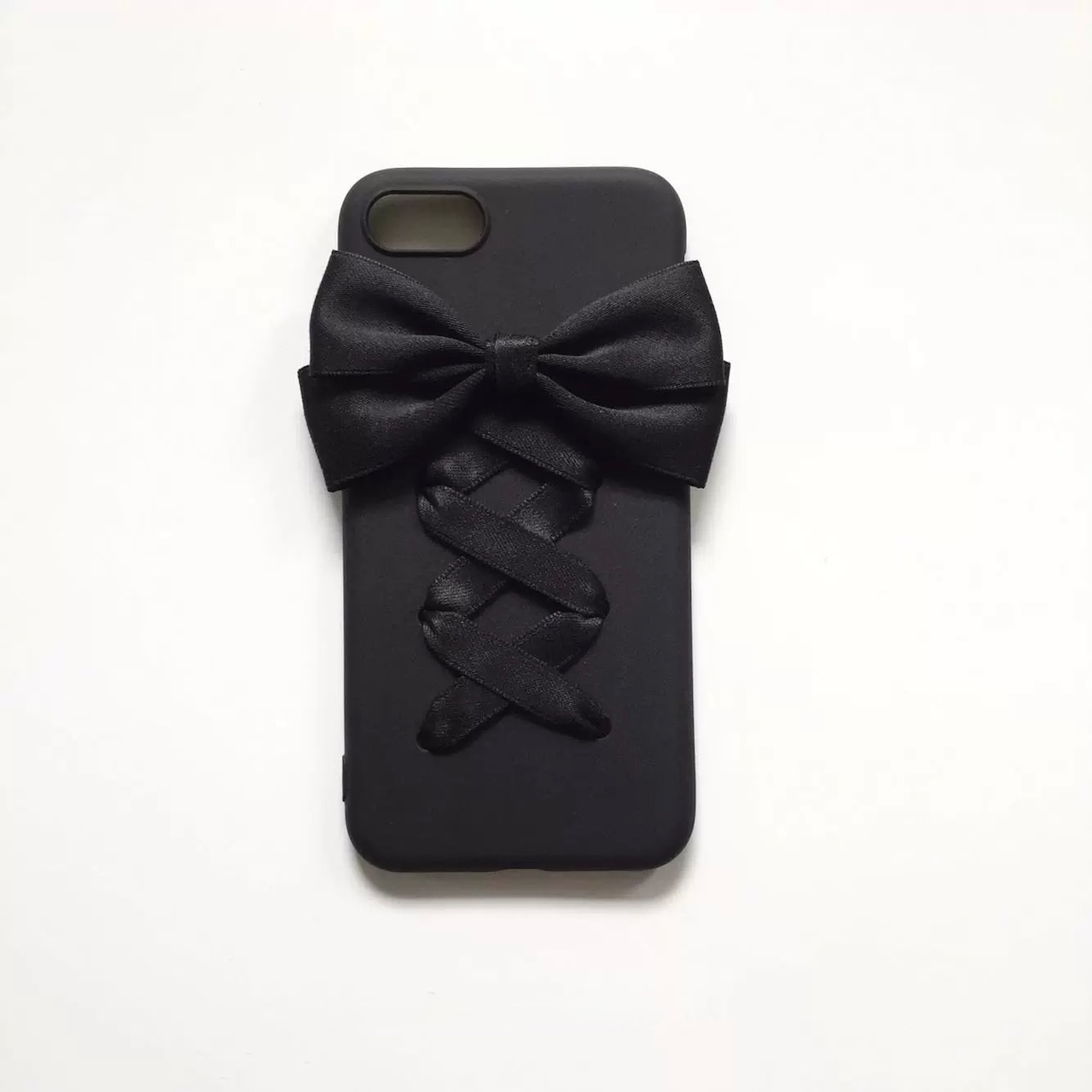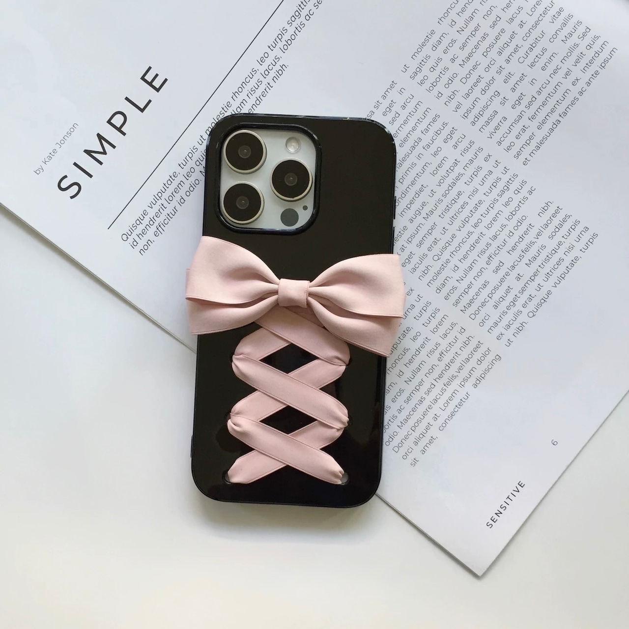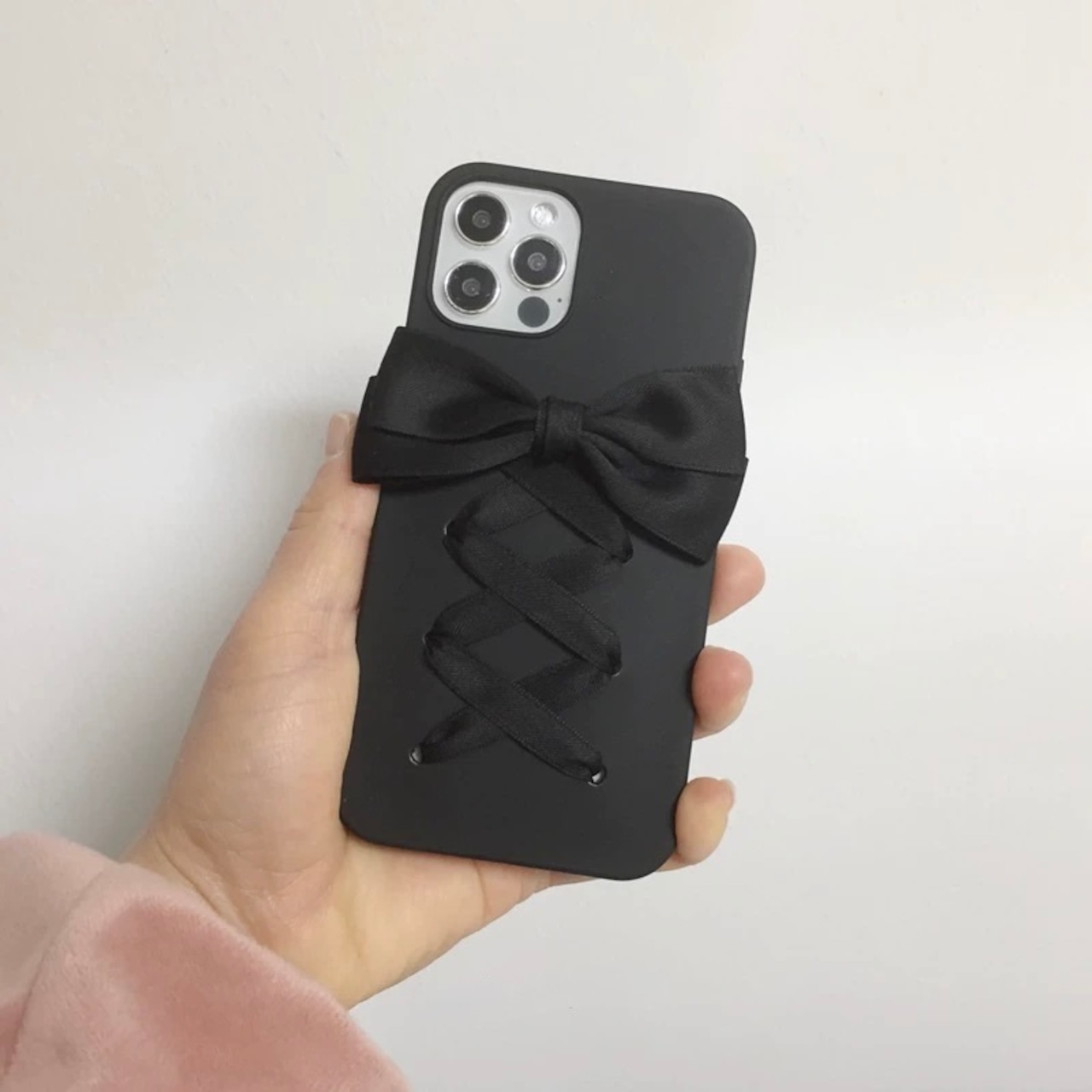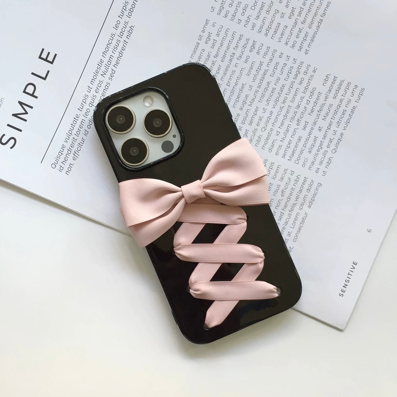 大きなリボンとレースアップデザインが目を惹く、乙女心くすぐるiPhoneケース。