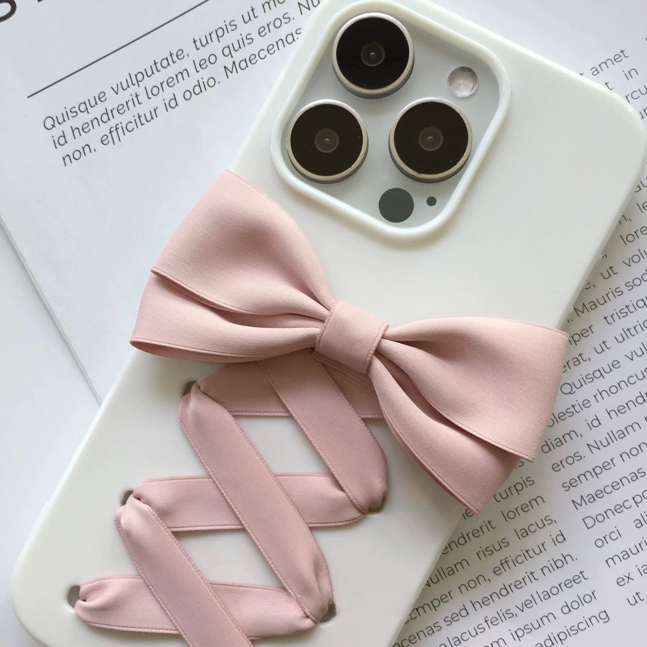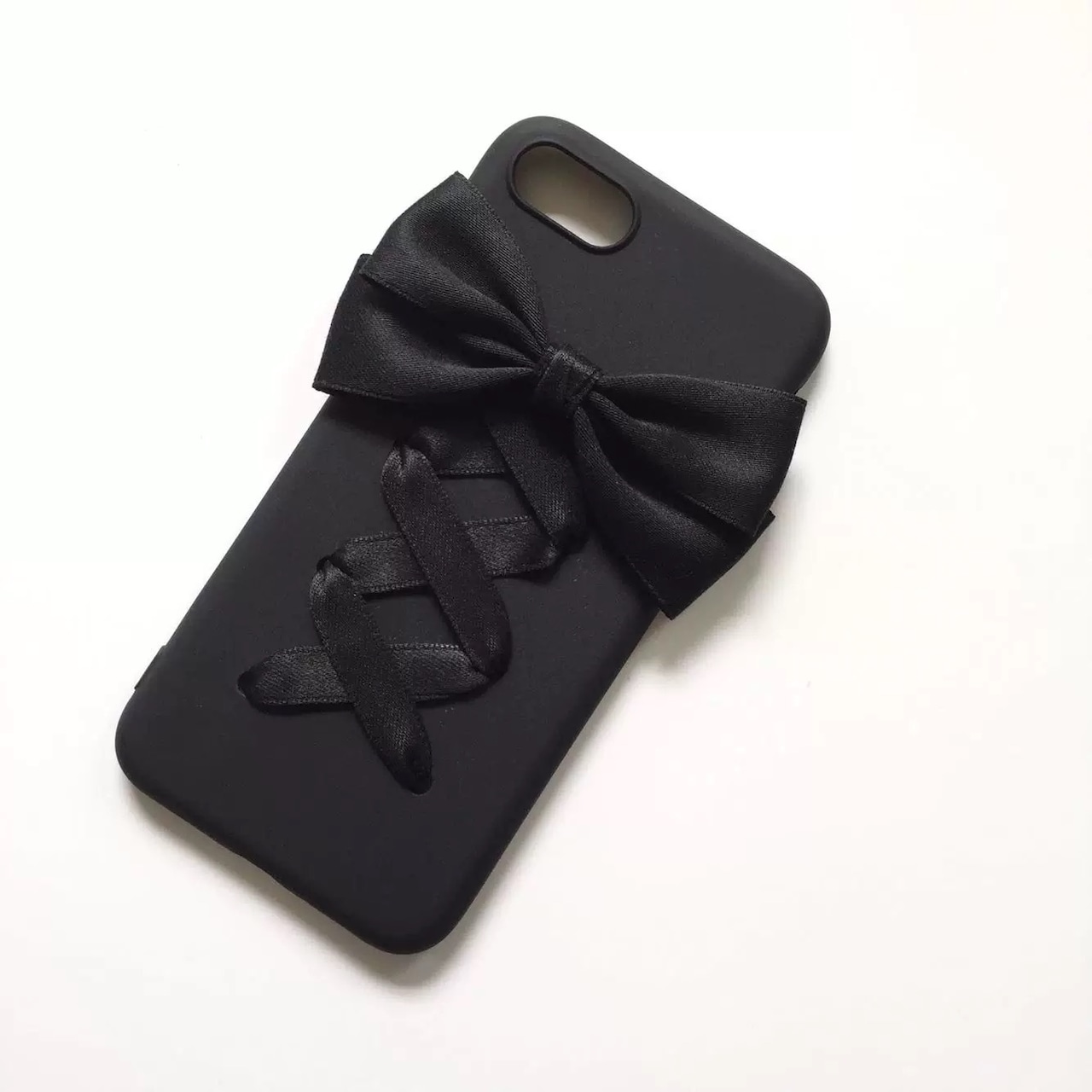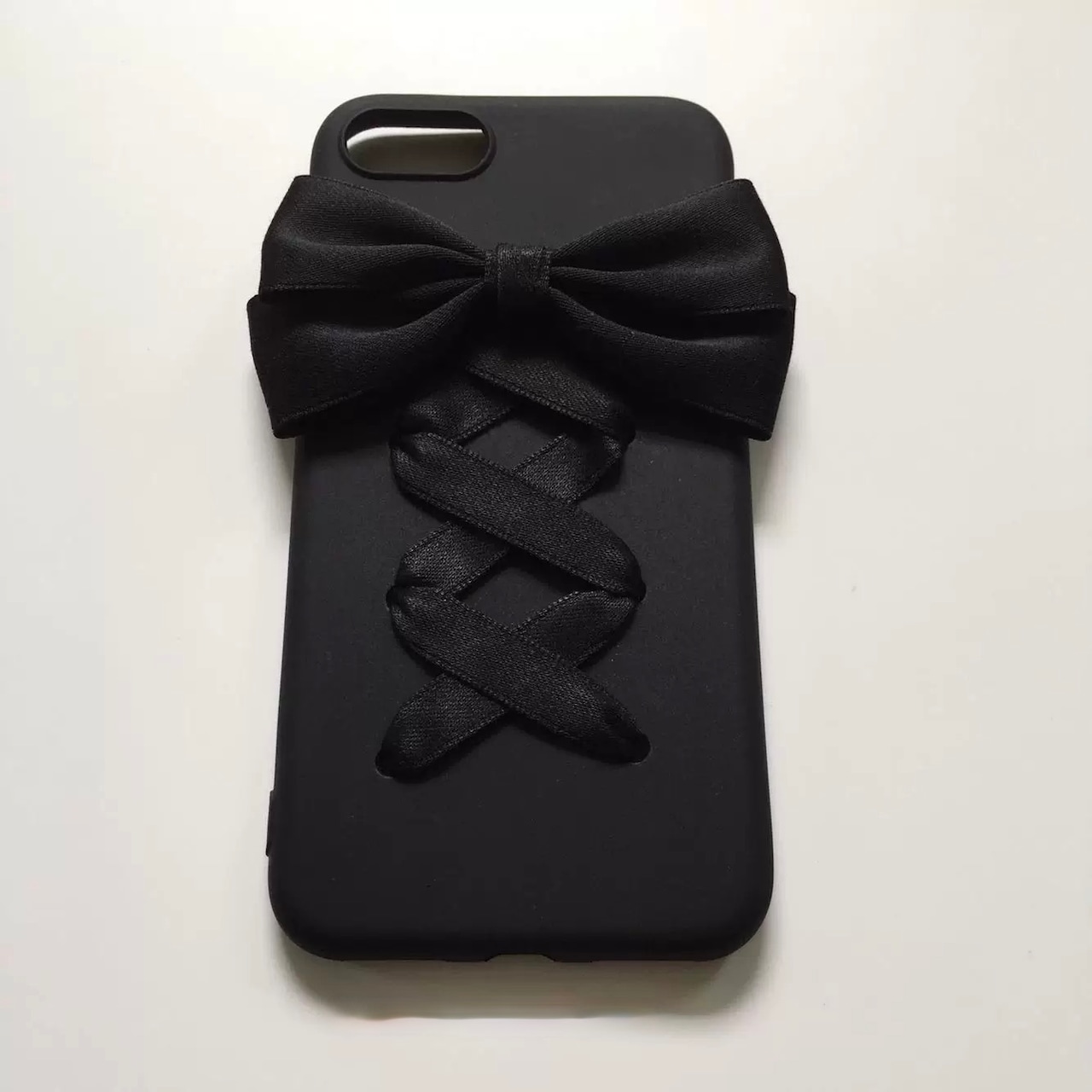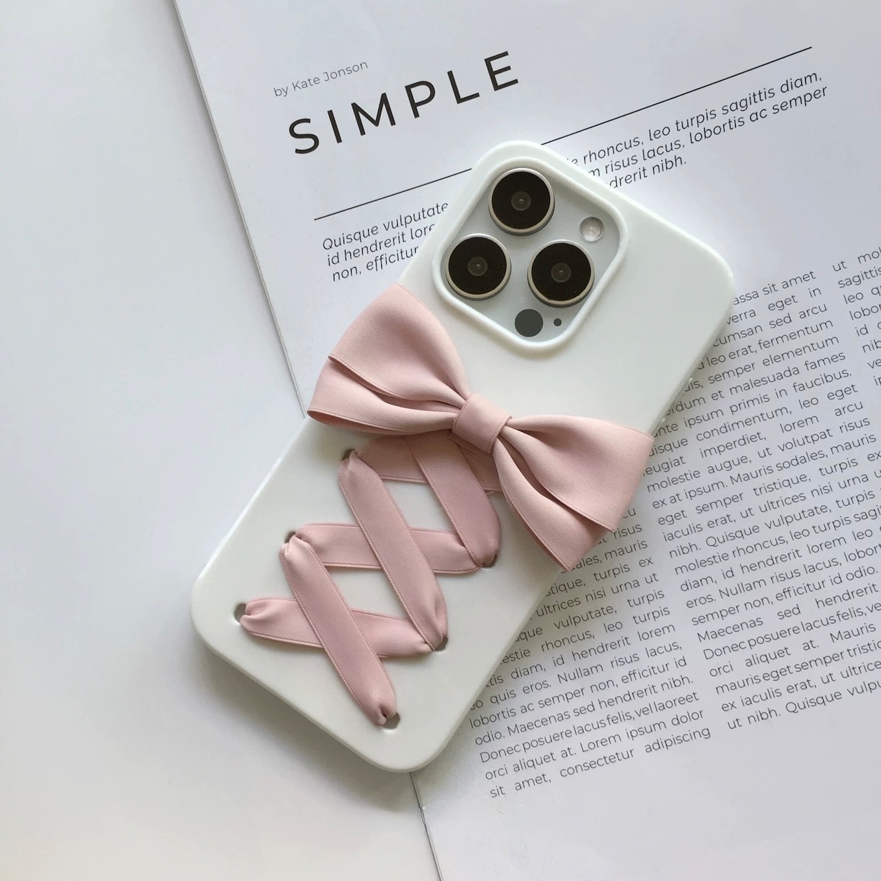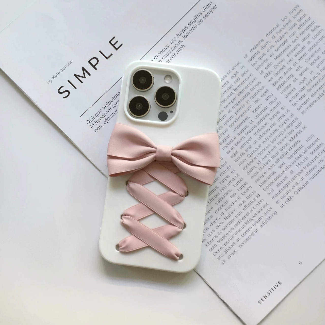 大きなリボンとレースアップデザインが目を惹く、乙女心くすぐるiPhoneケース。