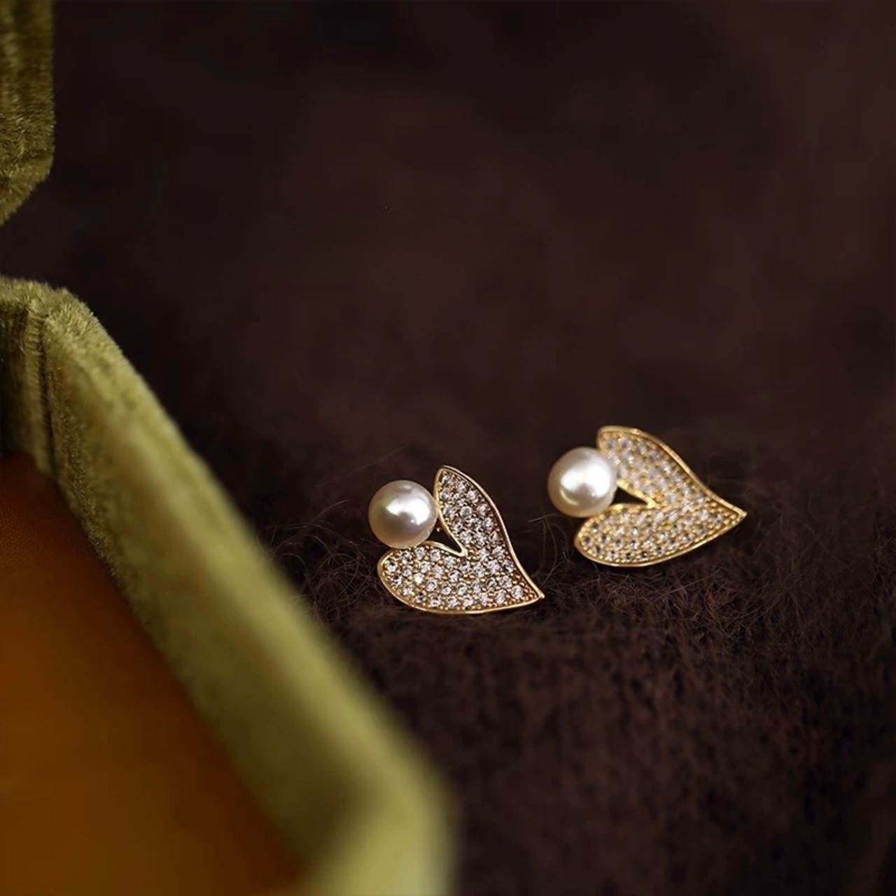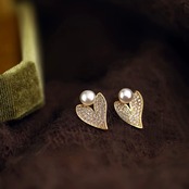 繊細な輝きを放つ小さなキュービックジルコニアを敷き詰めたハートモチーフに、上品な艶めきを添える淡水パールを一粒。