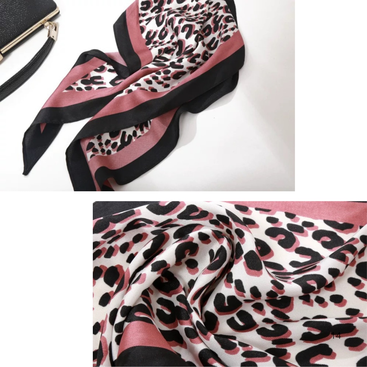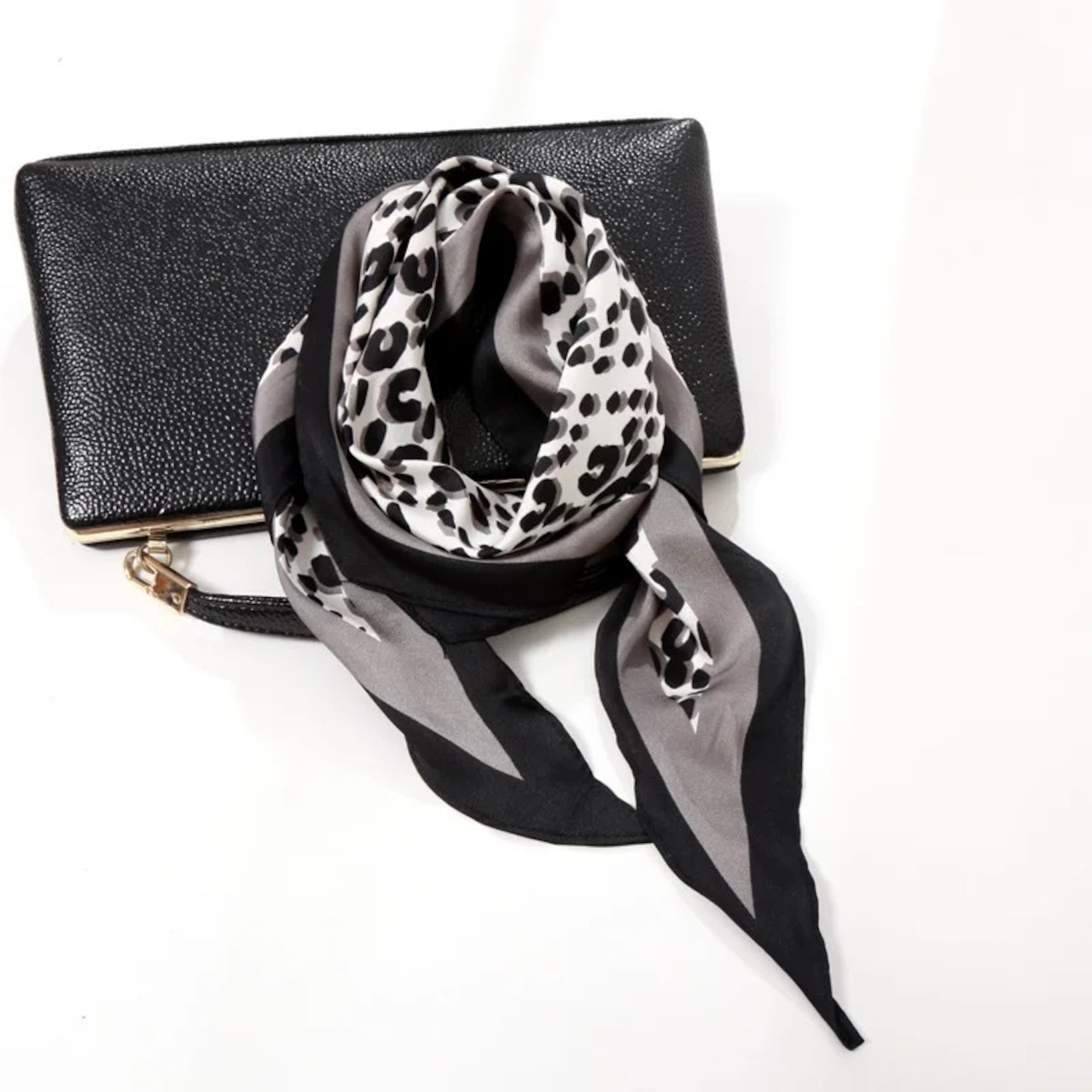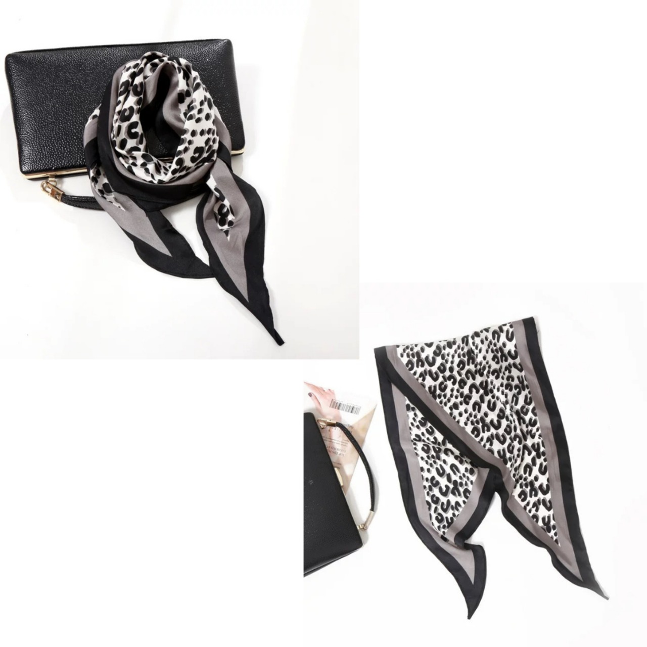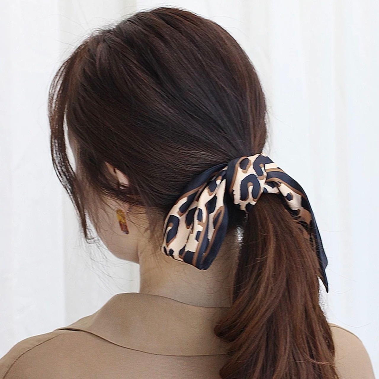 今年のトレンド、レオパード柄を取り入れたトライアングルスカーフ。