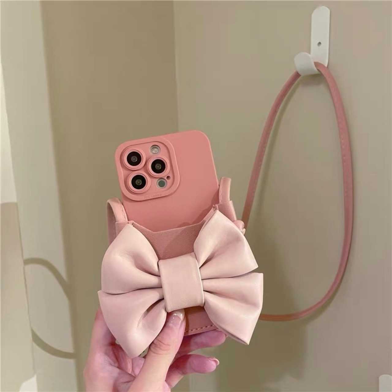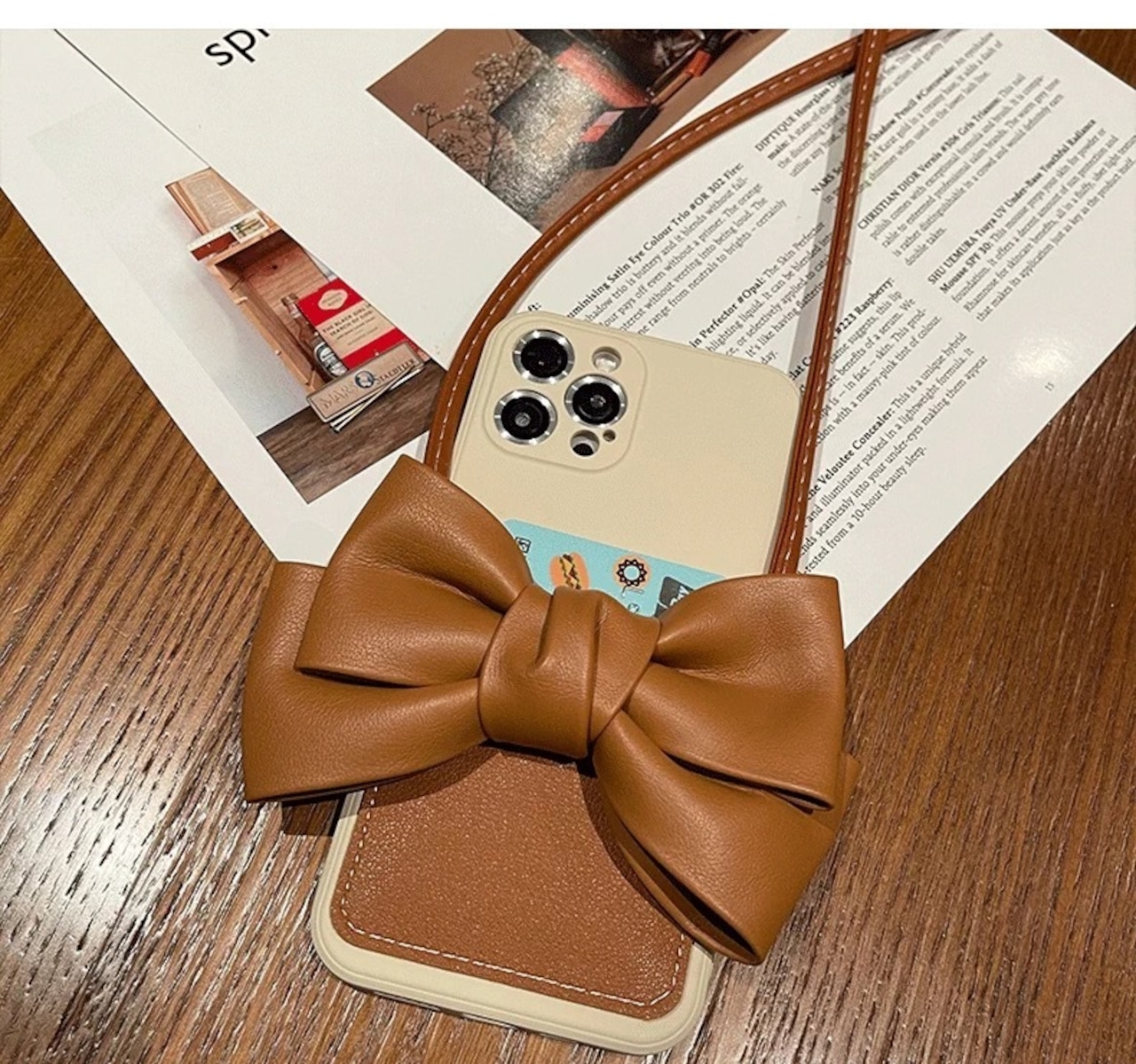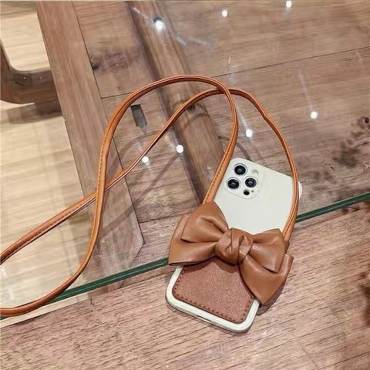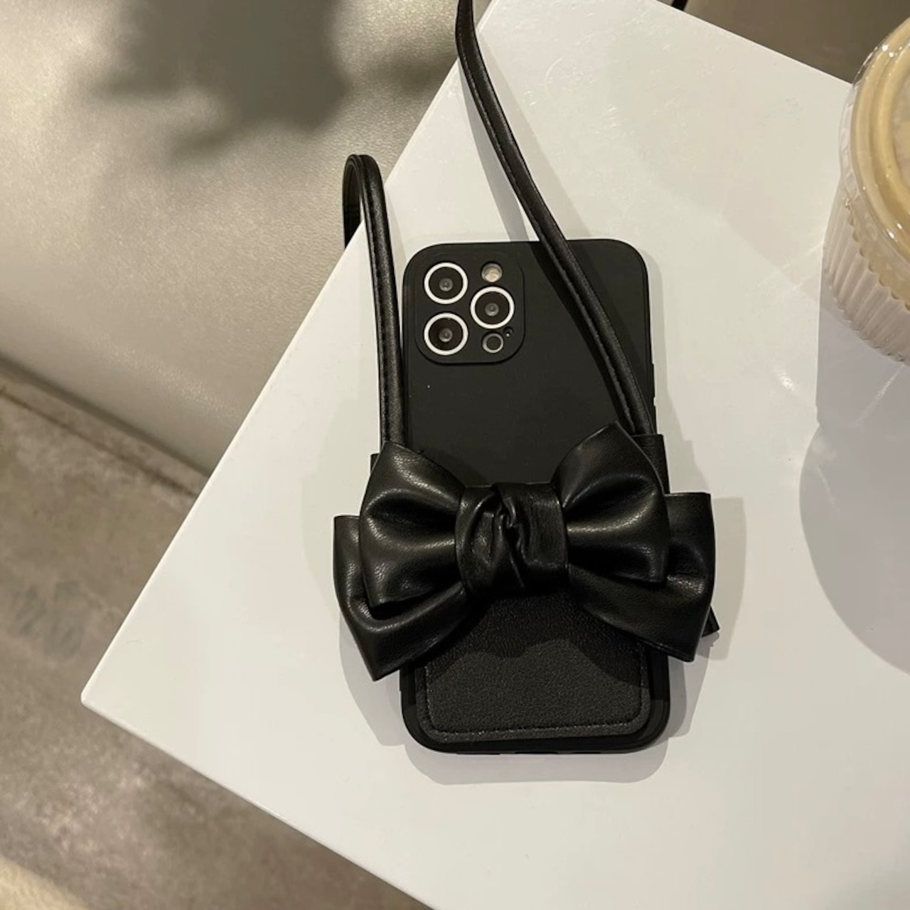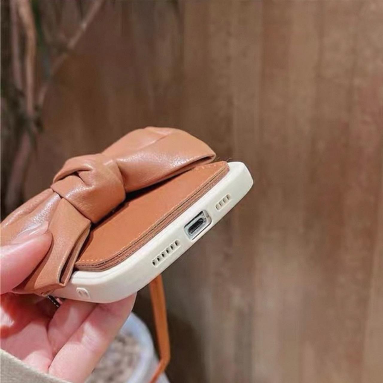 存在感たっぷりのビッグリボンが目を惹く、レザー調ショルダーiPhoneケース。