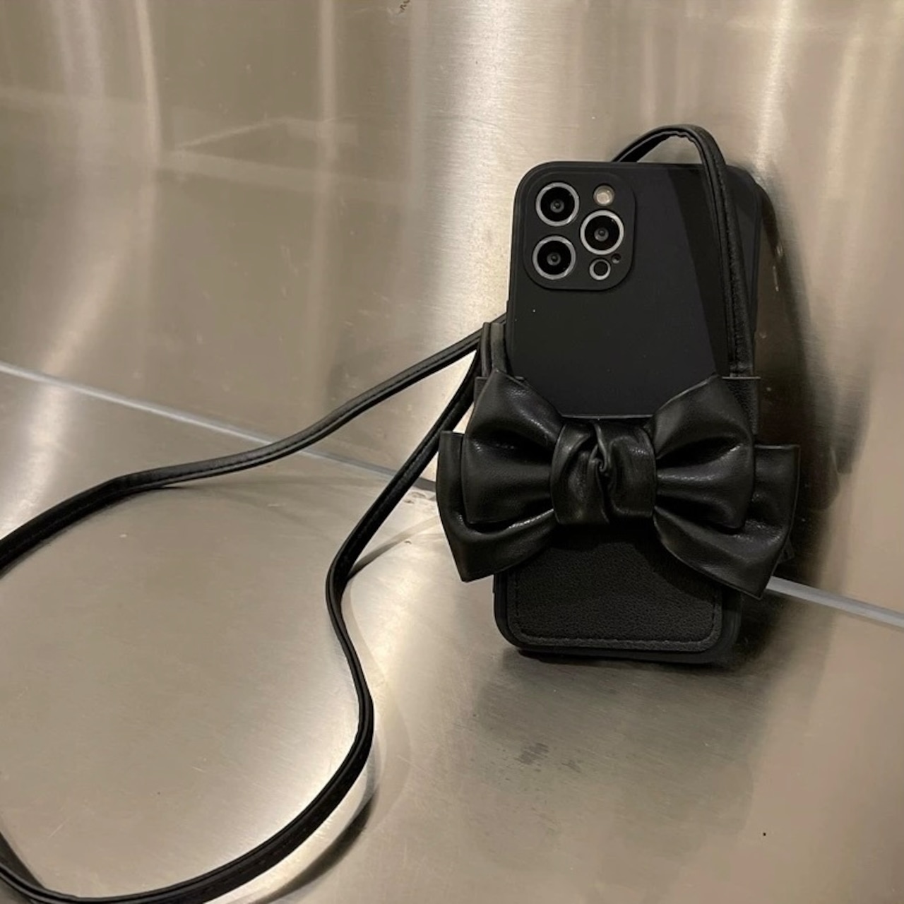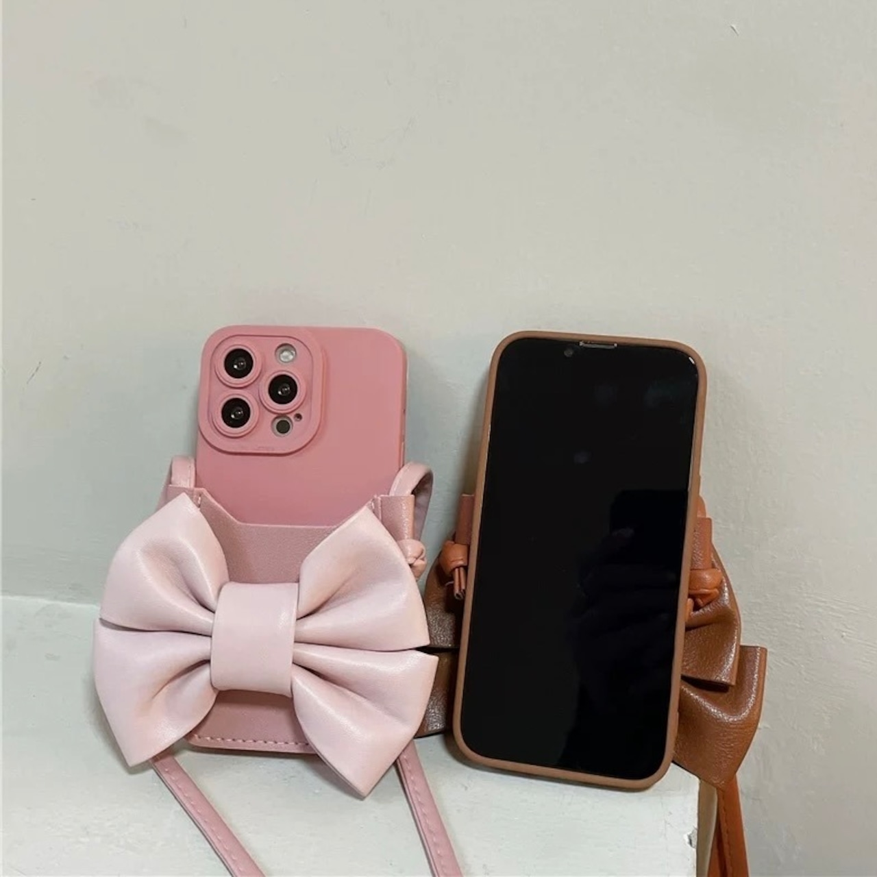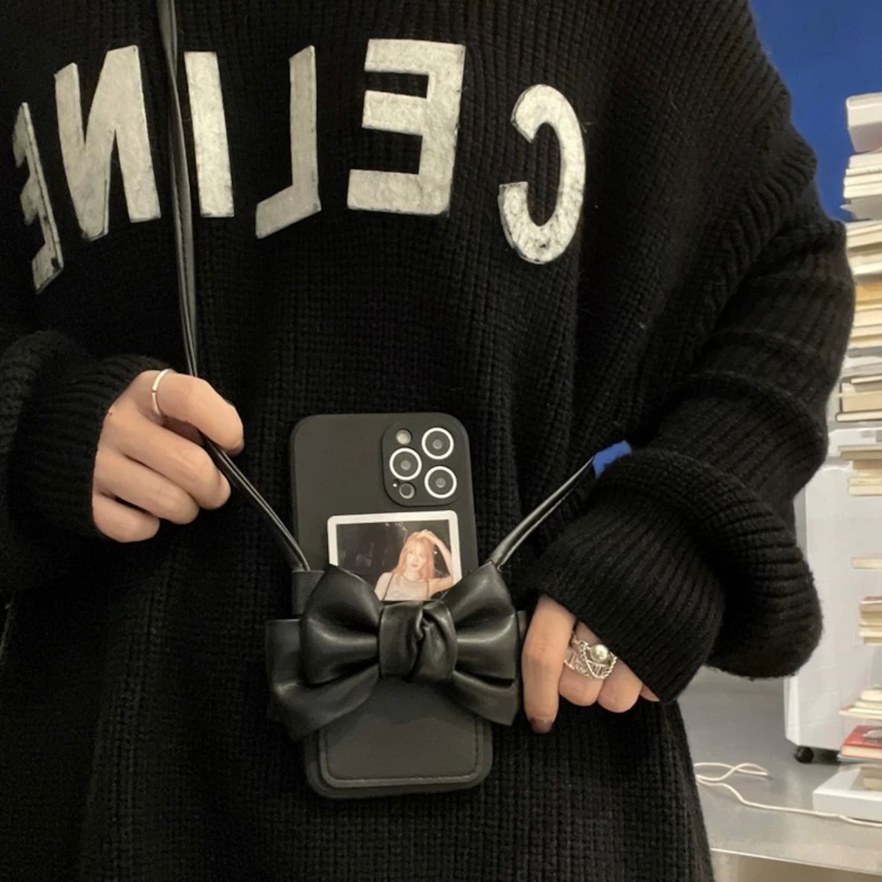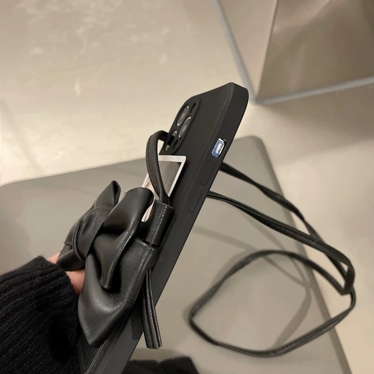 存在感たっぷりのビッグリボンが目を惹く、レザー調ショルダーiPhoneケース。