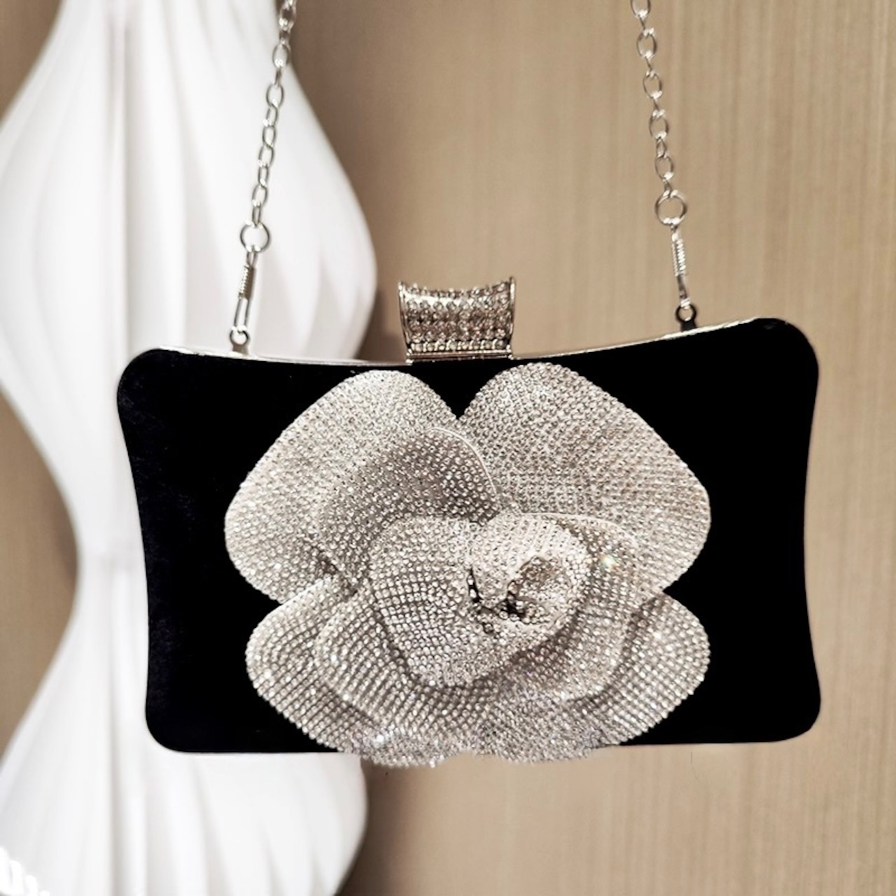 立体的で大ぶりなフラワーモチーフが印象的なハンドバッグ。