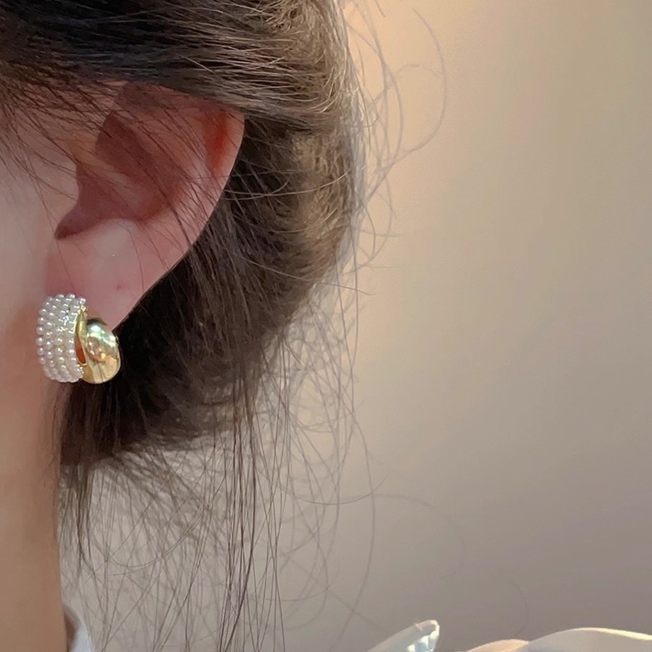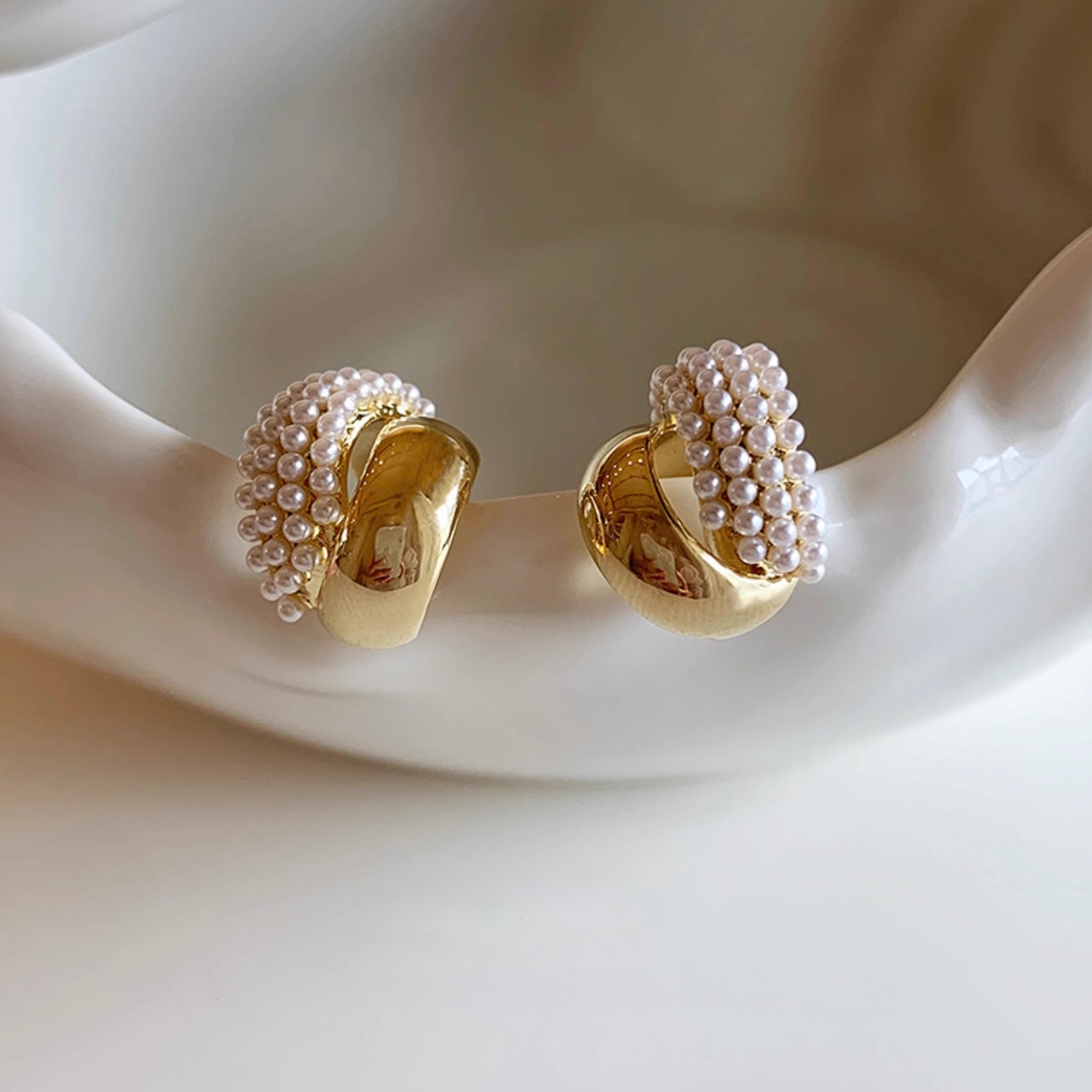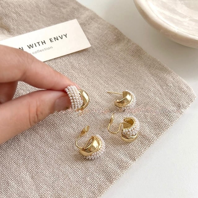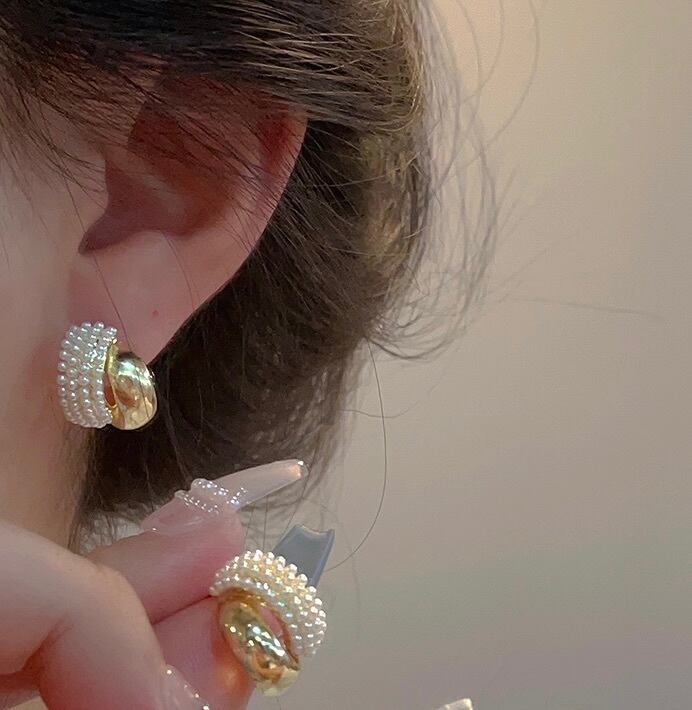 立体感のあるメタルフープに繊細なパールを重ねた、上品で華やかなアクセサリー。