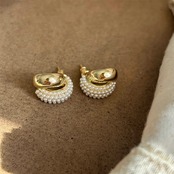 パヴェパールレイヤード メタルフープピアス・イヤリング(ゴールド・シルバー):586