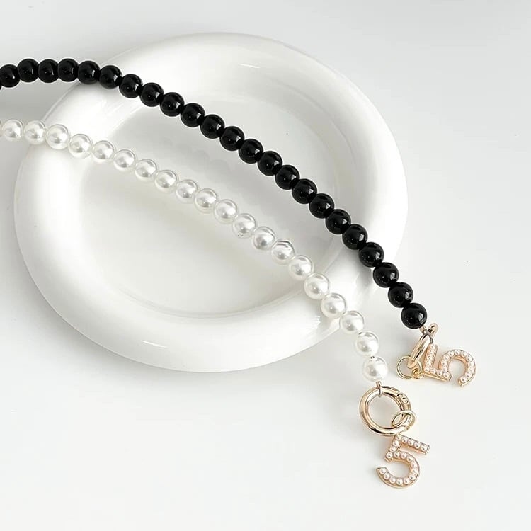 パール&ビーズチャームハンドストラップ(ブラック/ホワイト):592