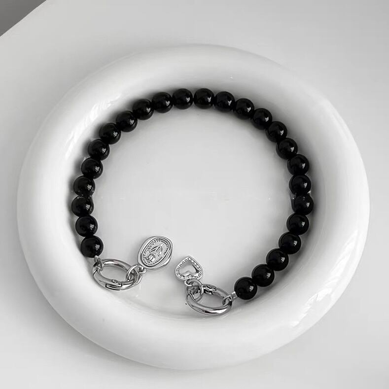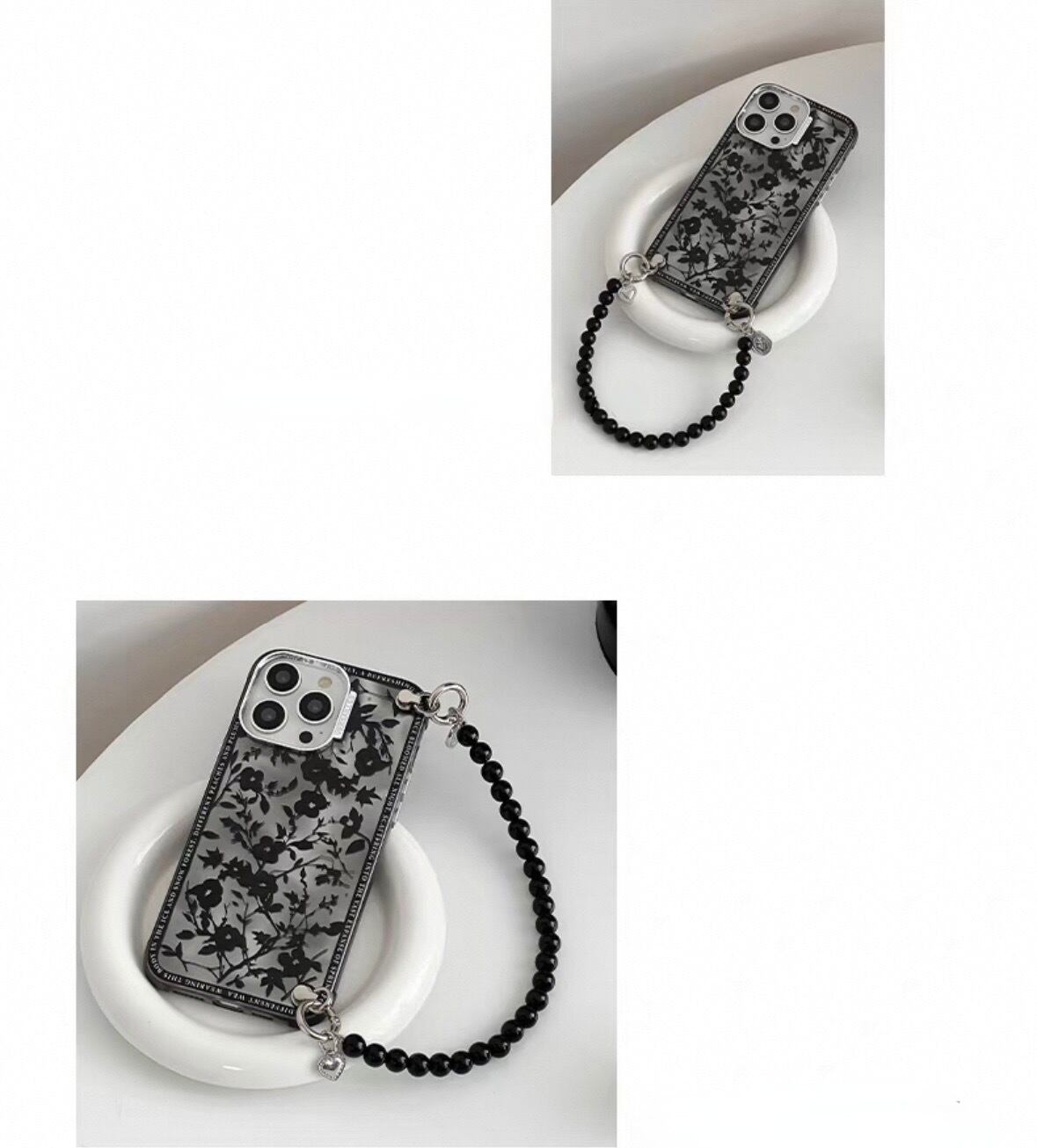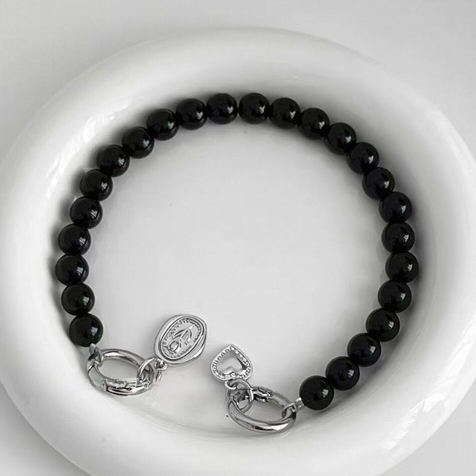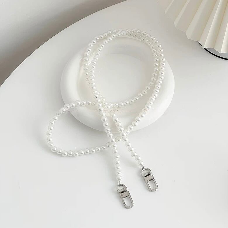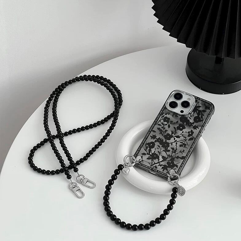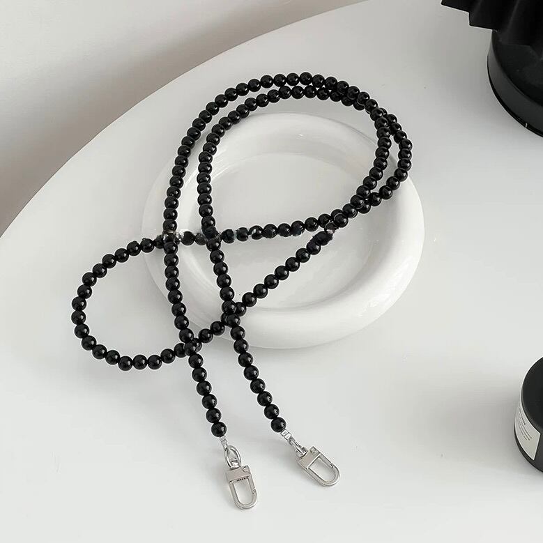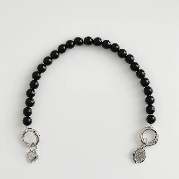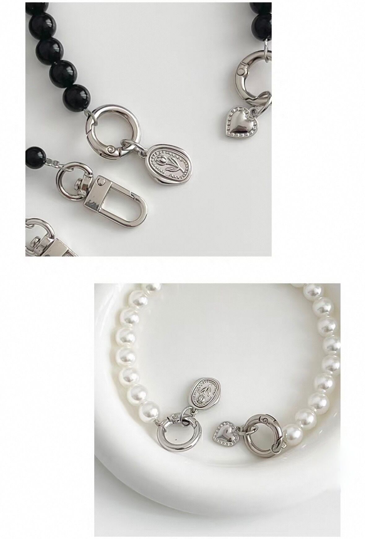チャーム付きパールストラップ ブラック/ホワイト(6デザイン):593