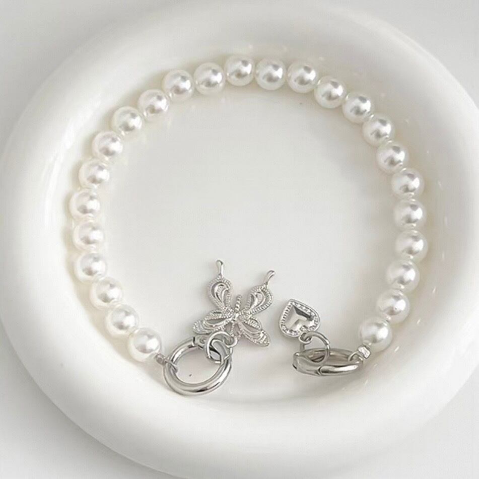 上質なパールに、繊細なハートやバタフライのチャームを添えた、ラグジュアリーなストラップ。