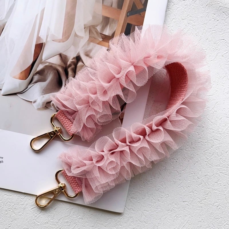ふんわりとしたチュールフリルが目を惹く、華やかなショルダー&ハンドストラップ。