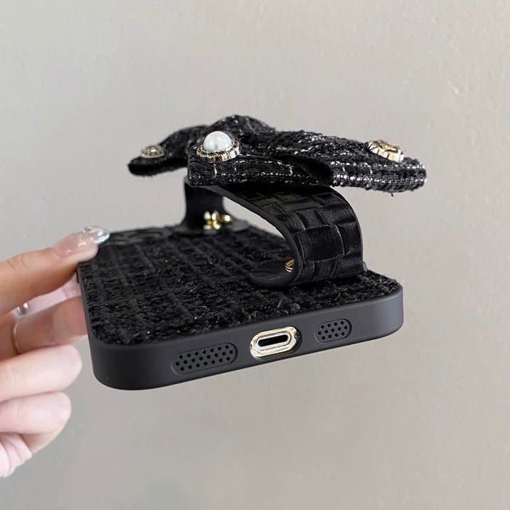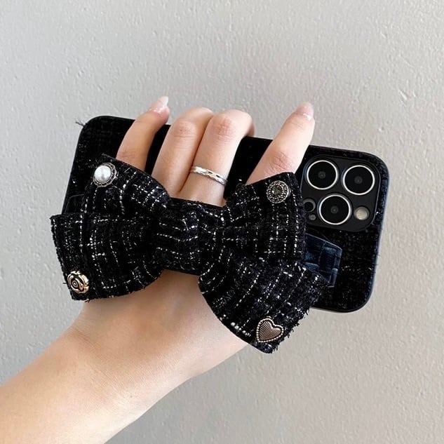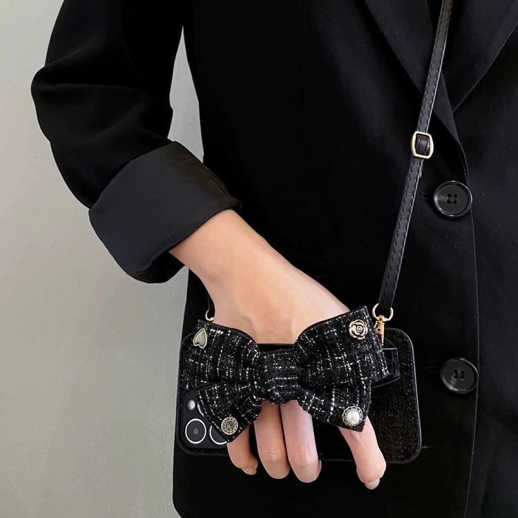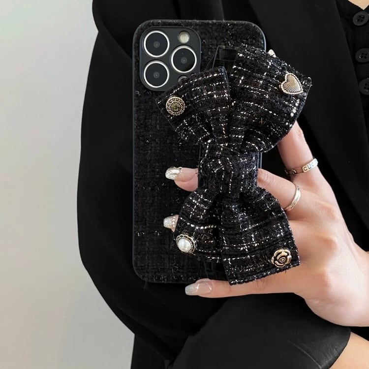ラグジュアリーなツイード生地に、大ぶりなリボンをあしらったエレガントなiPhoneケース。
