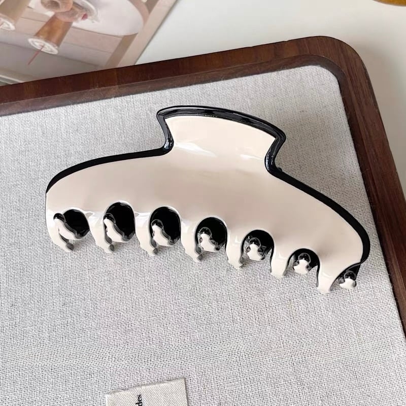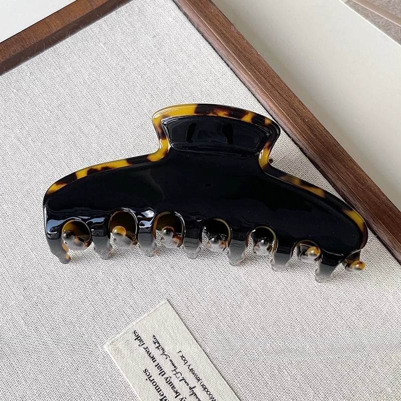 滑らかな光沢と上品なカラーコントラストが魅力のアセテートヘアクリップ。