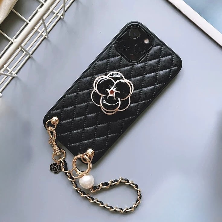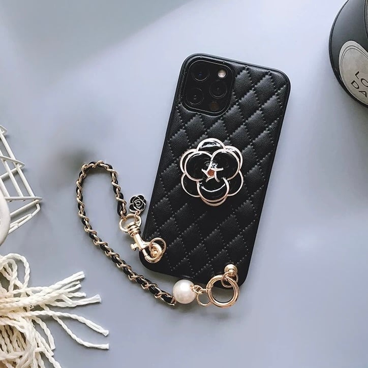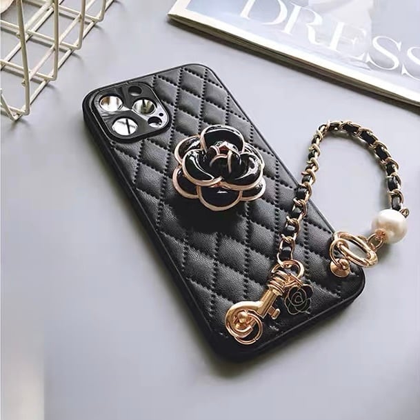 カメリアキルティングレザー iPhoneケース(リストチェーン付き):603