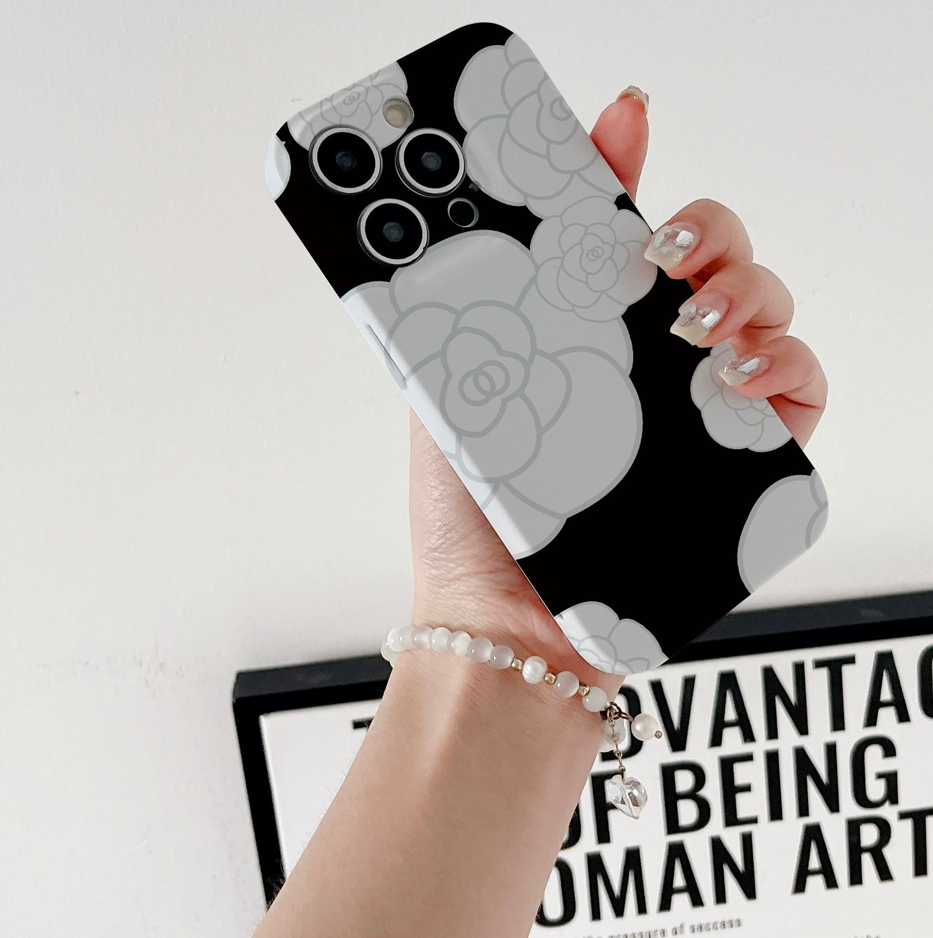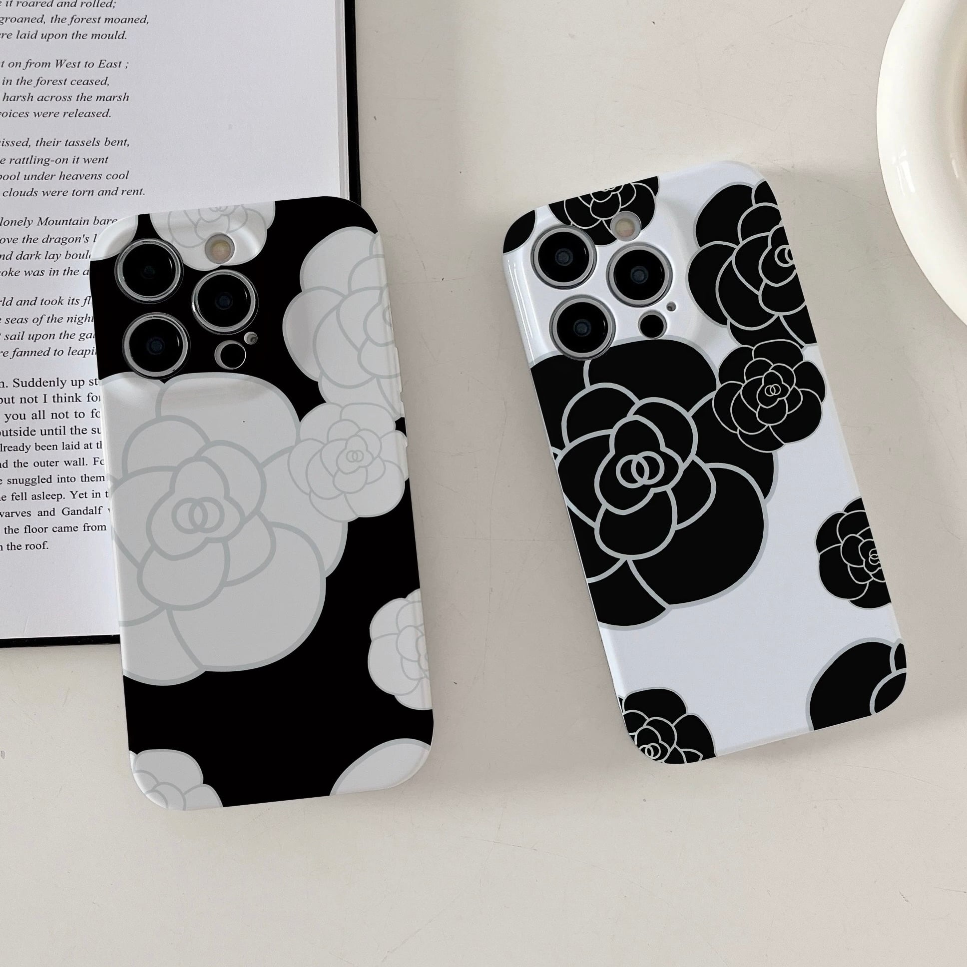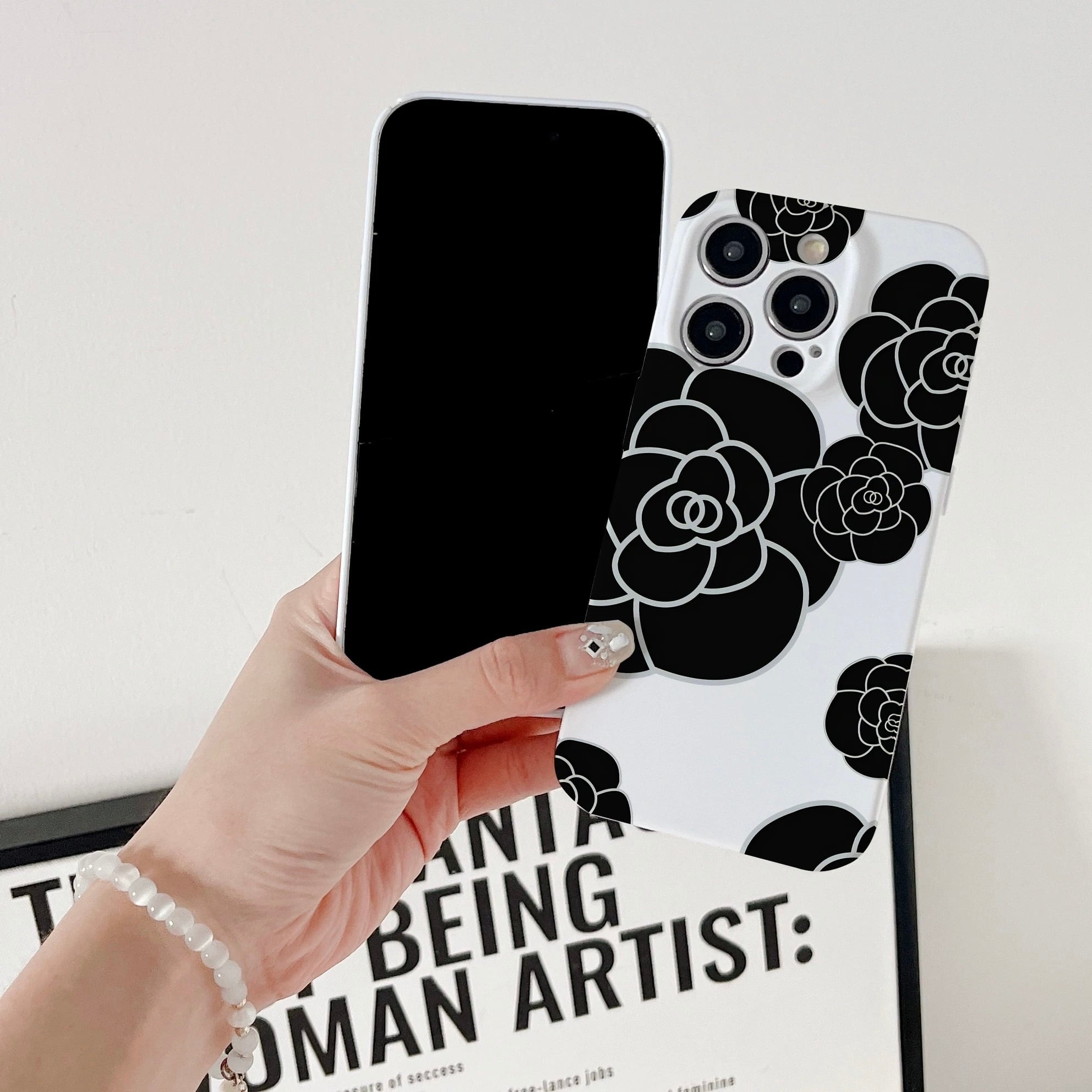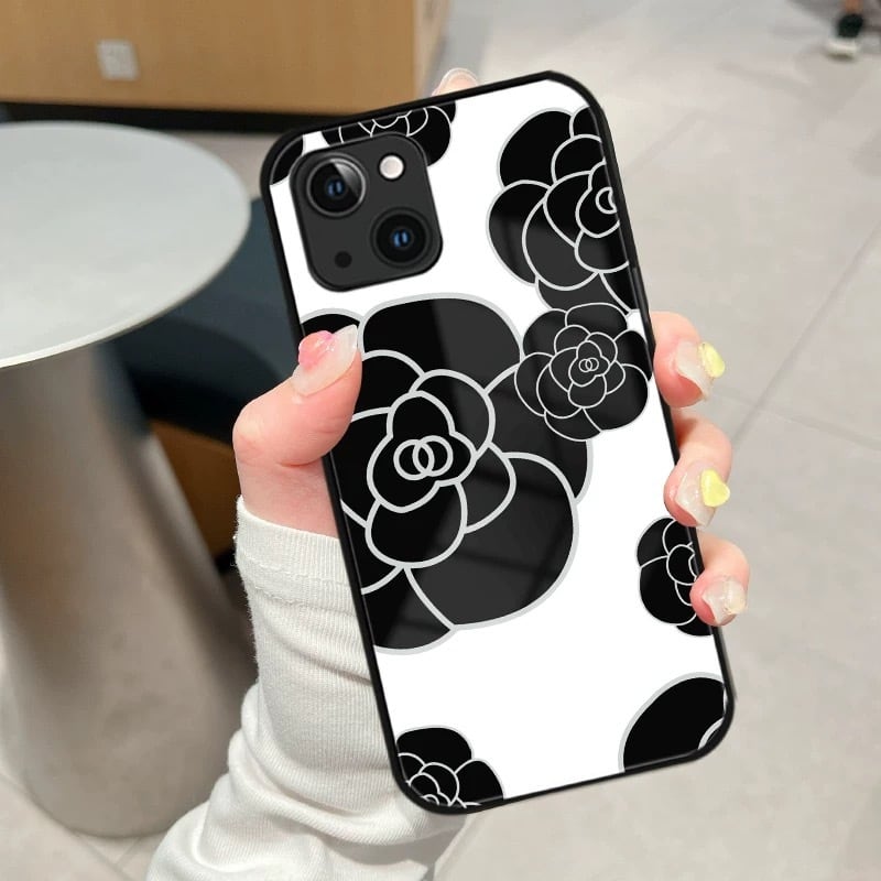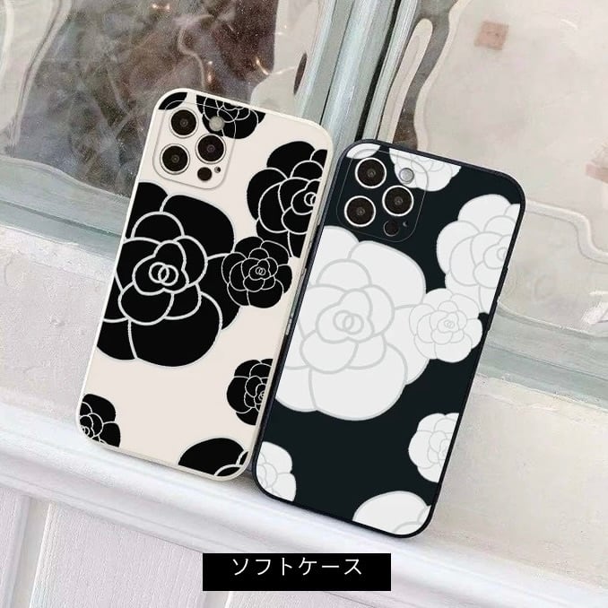 カメリア iPhoneケース(ブラック/ホワイト):605