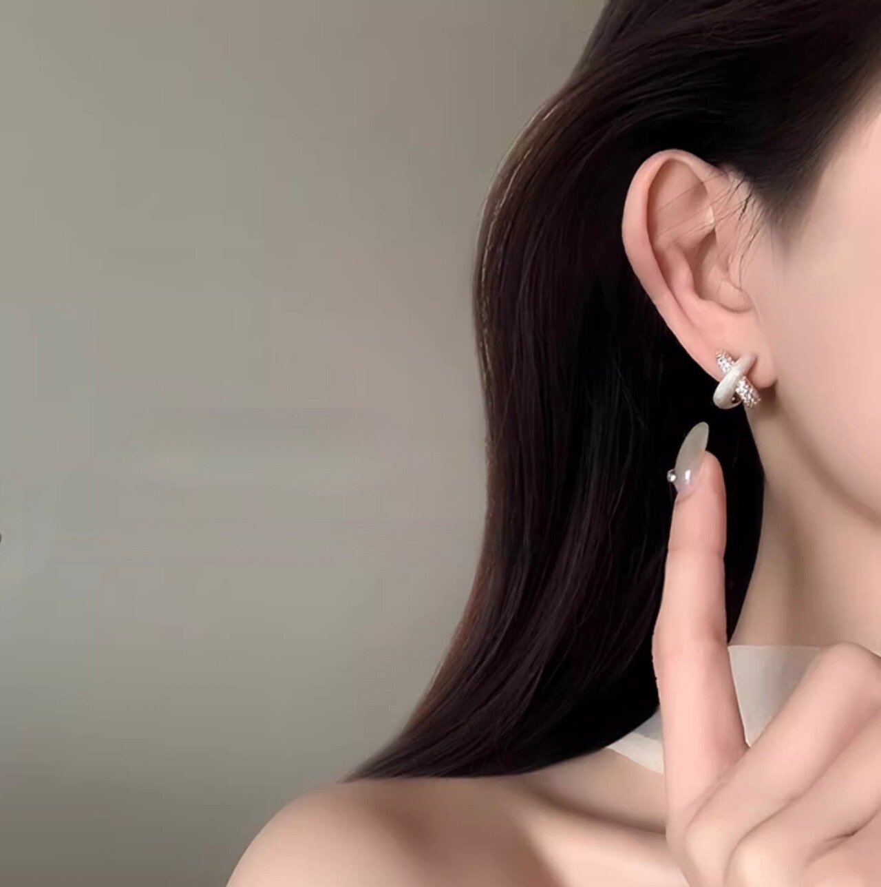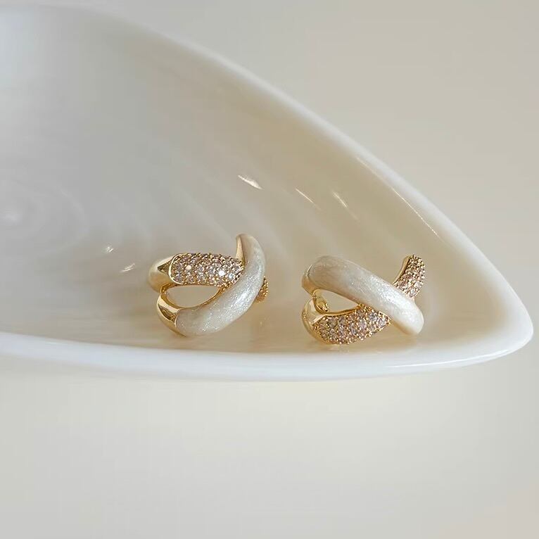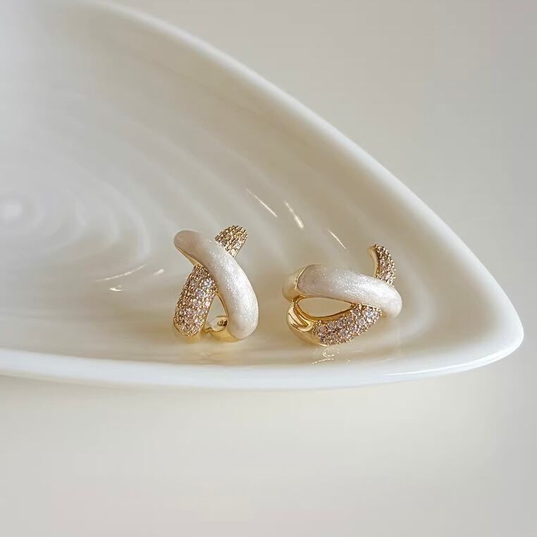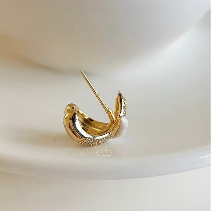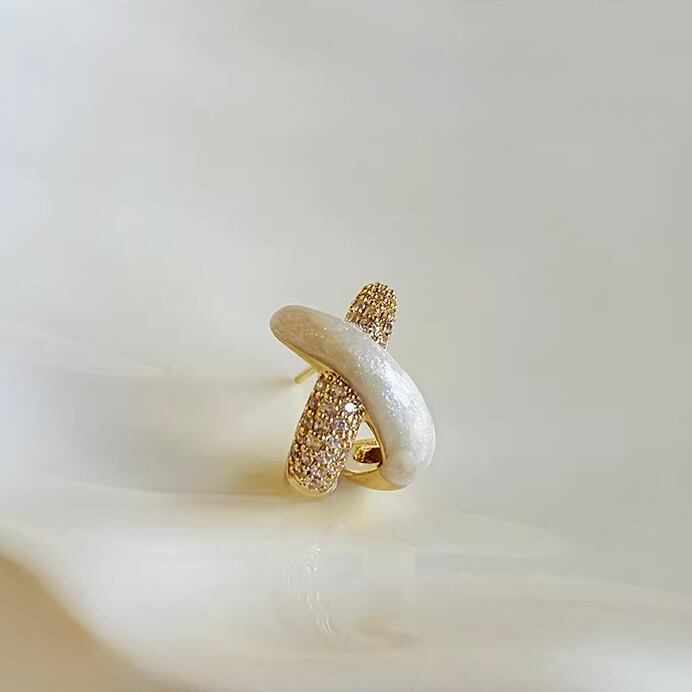 シルキーな質感のメタルと繊細に輝くストーンが美しく重なり合い、耳元にモダンで華やかな存在感を添えます。