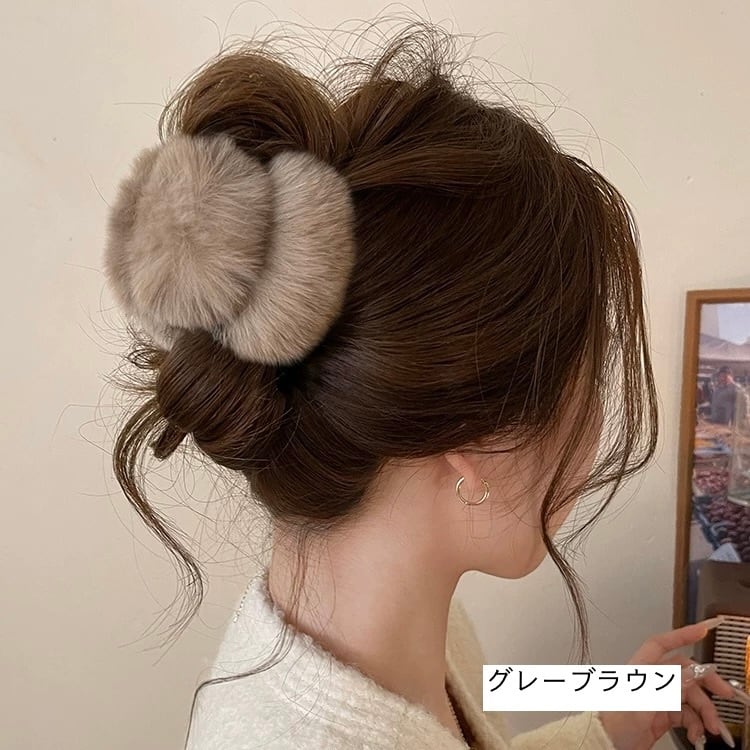 ふんわりとしたファーが髪を包み込み、冬の装いにぬくもりを添えるヘアクリップ。