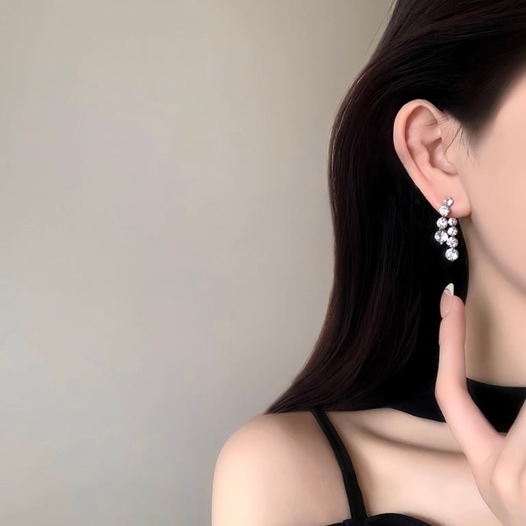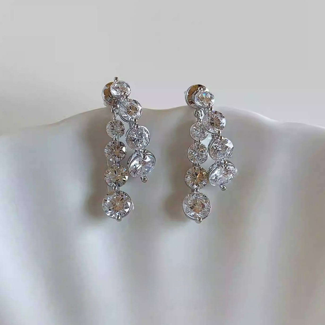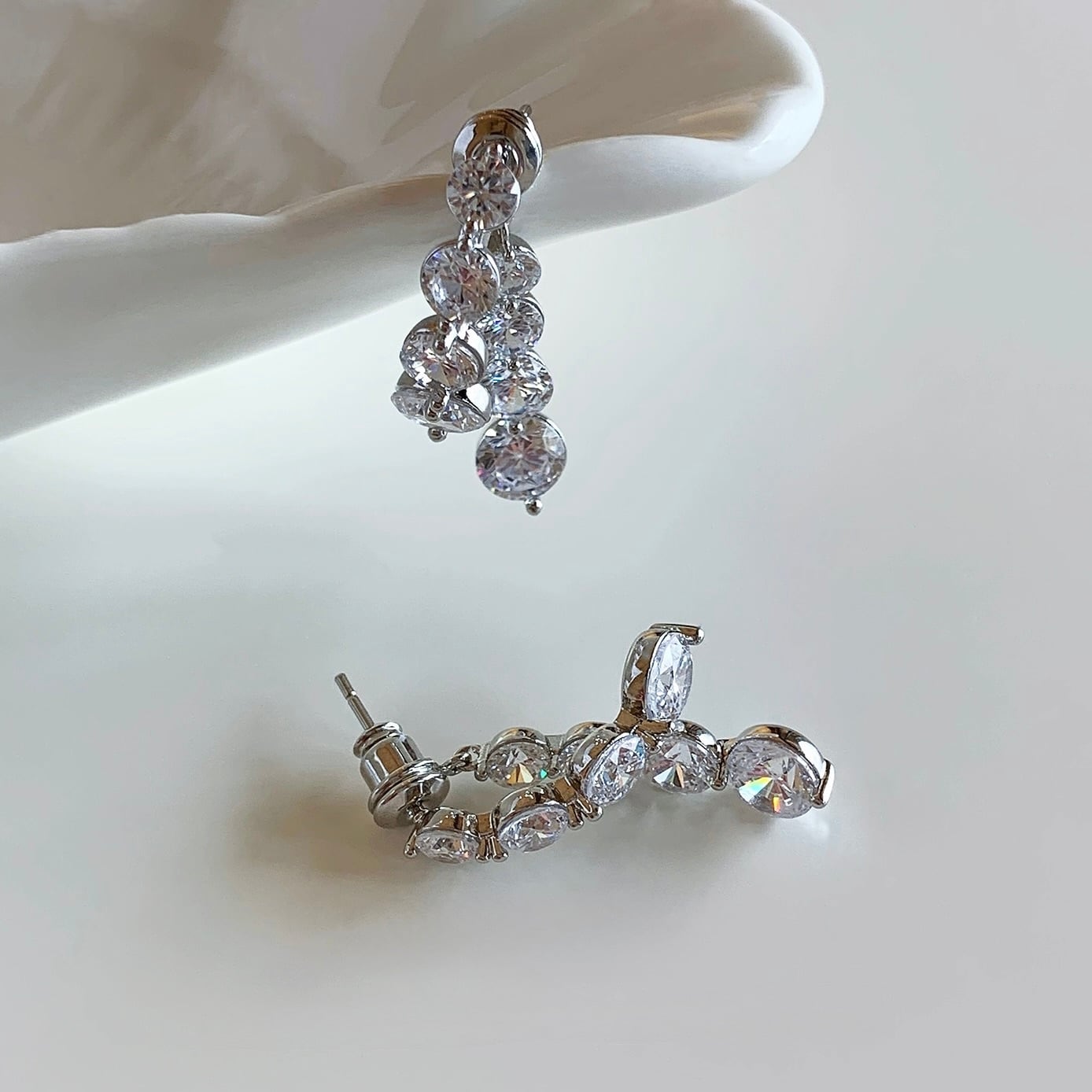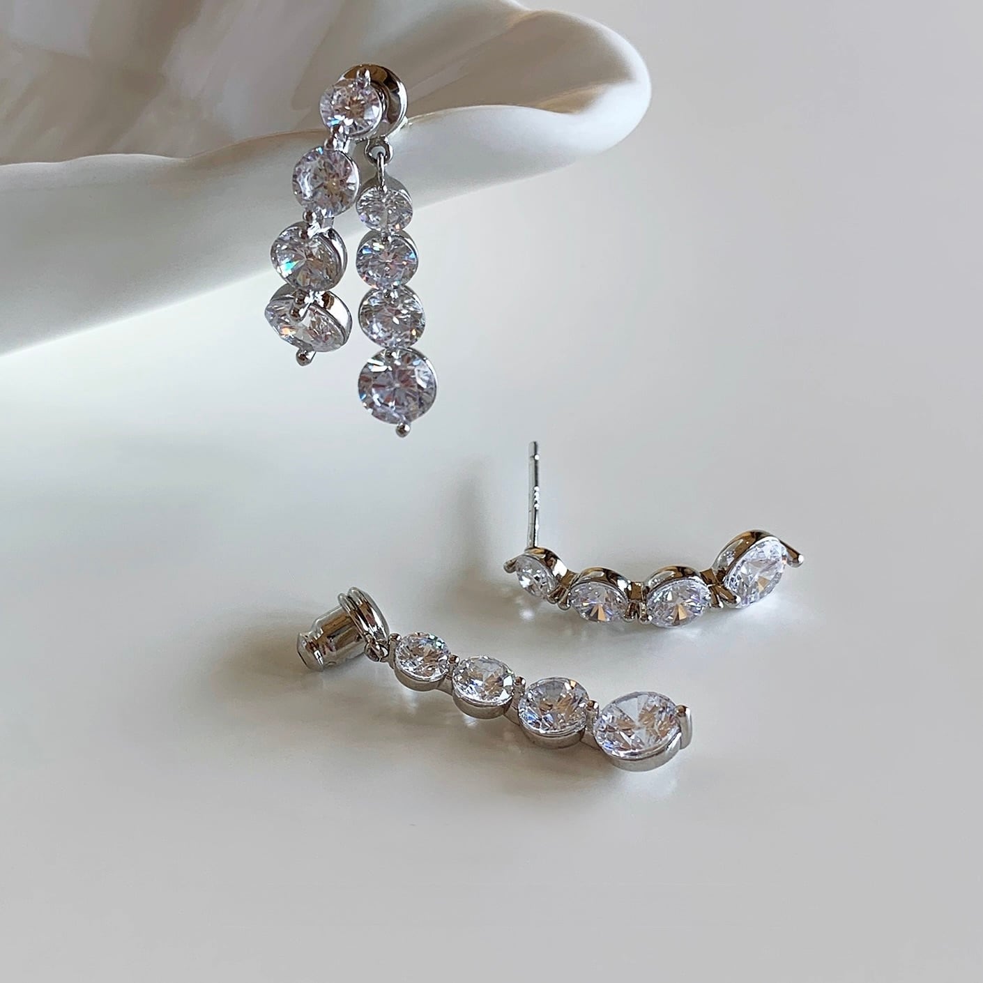 透明感あふれるキュービックジルコニアが並んだ、上品な輝きの2WAYピアス。