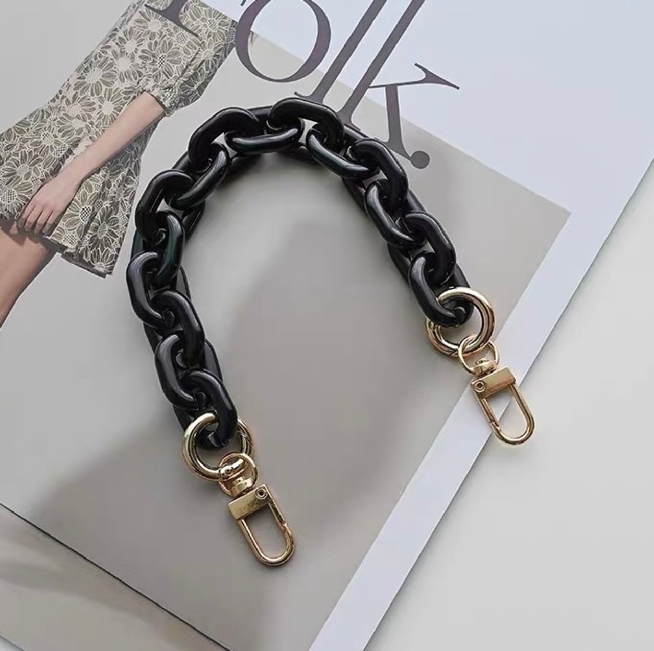 スタイリッシュなボリューム感が魅力のアクリルチェーンストラップ。