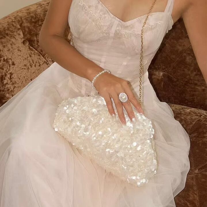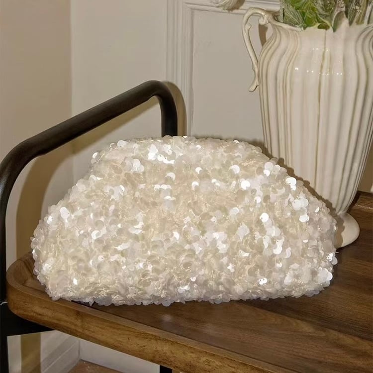 光が触れるたび、まばゆい輝きを放つスパンコールを贅沢にあしらった、大人のためのエレガントバッグ。