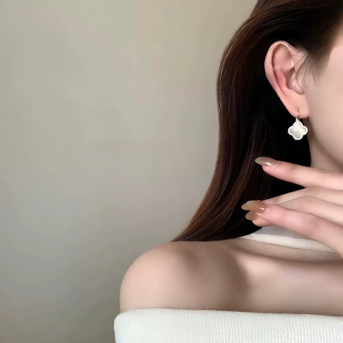 フェミニンな甘さと洗練された大人のムードを兼ね備え、横顔をそっと明るく照らします。