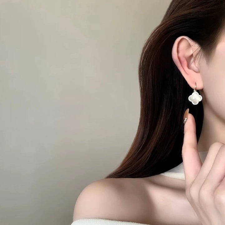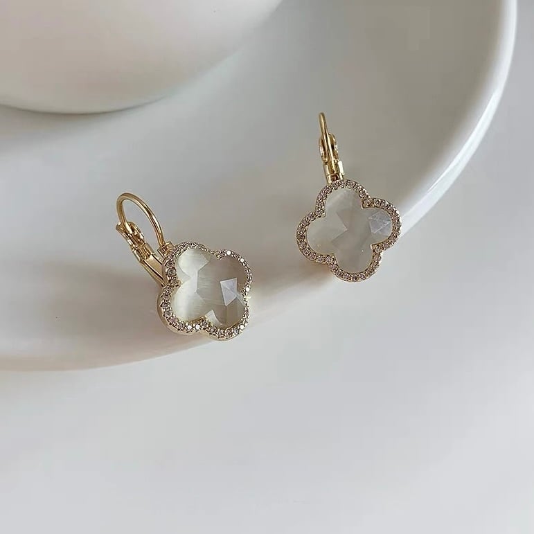 柔らかにきらめくクォーツを、四つ葉のシェイプに閉じ込めた上品なデザイン。