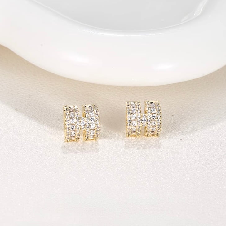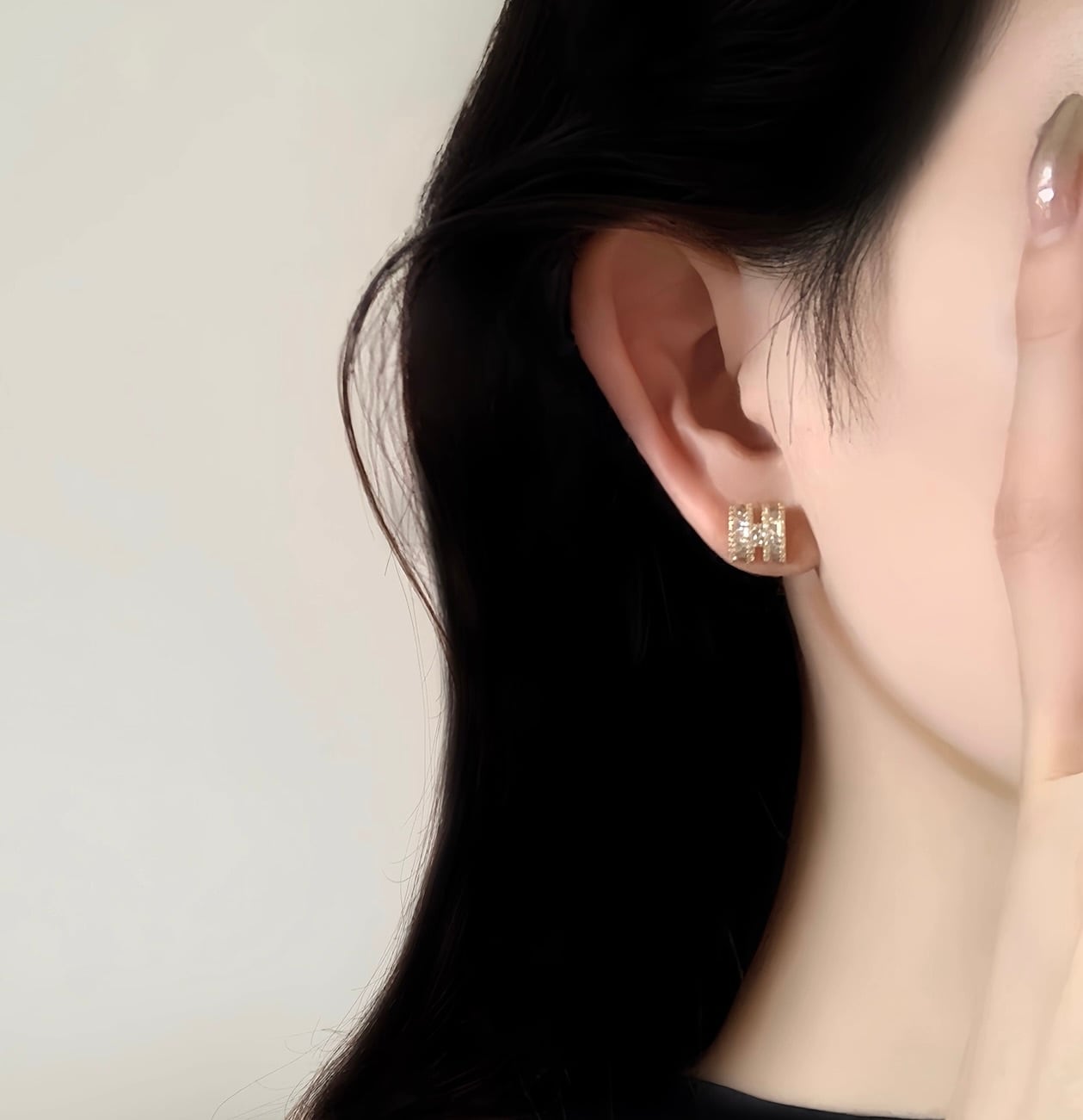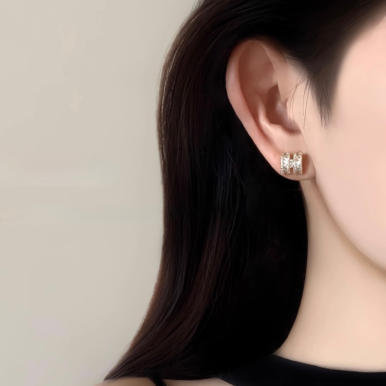 洗練された“H”デザインが耳元に立体的な輝きを添えるエレガンスピアス。