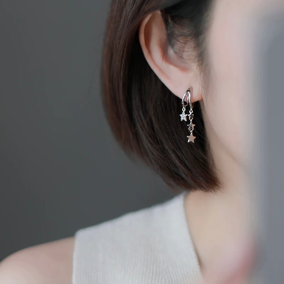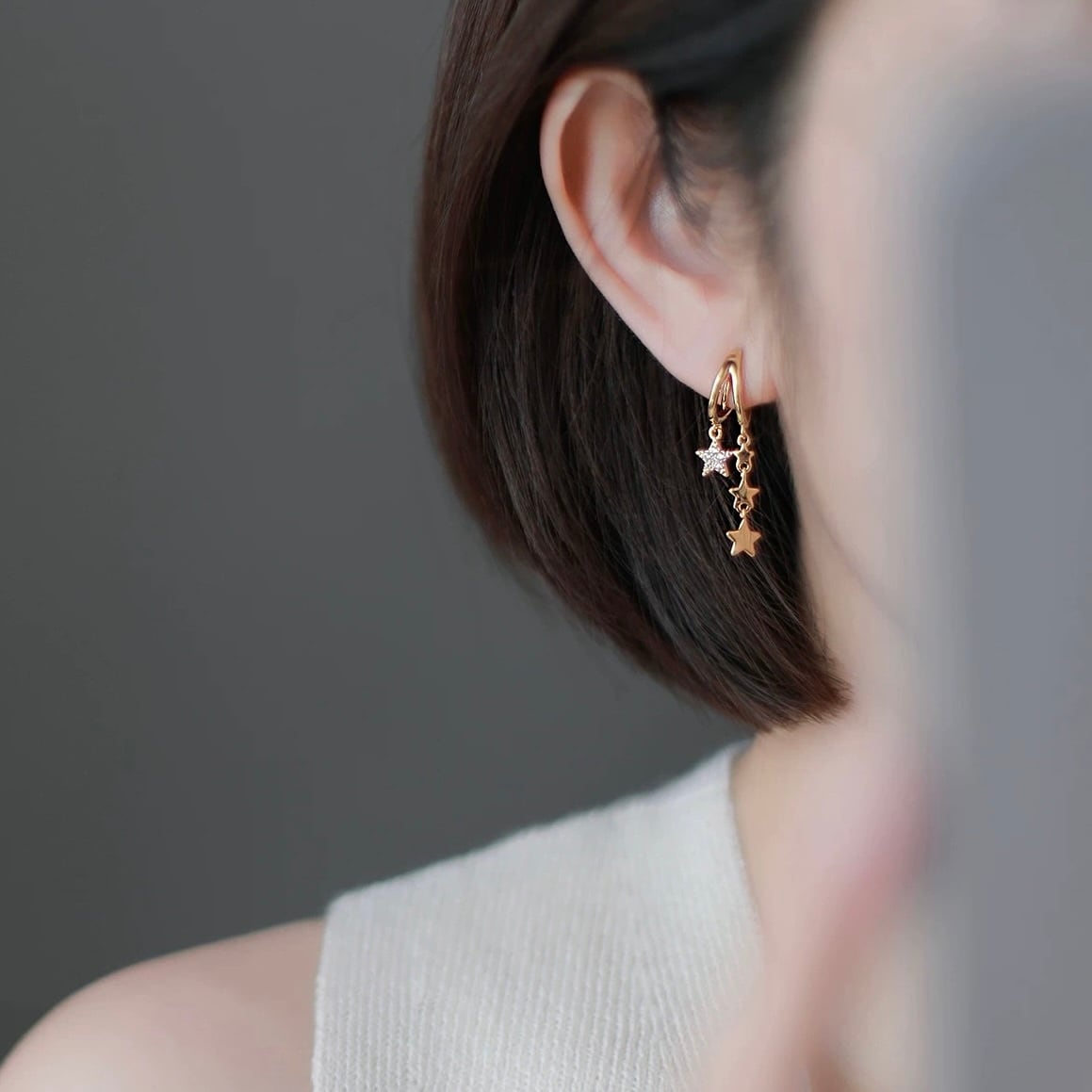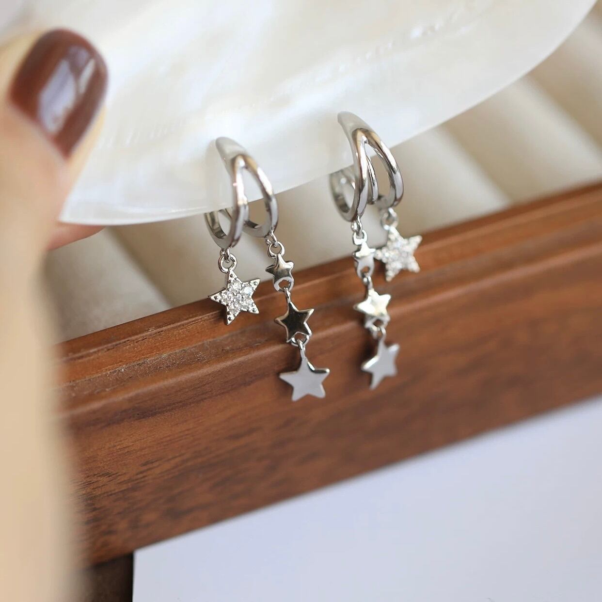 きらめく星を連ねた、ロマンティックな揺れ感が魅力のトリプルスターイヤリング。
