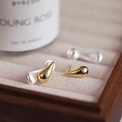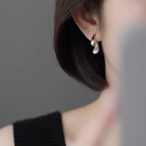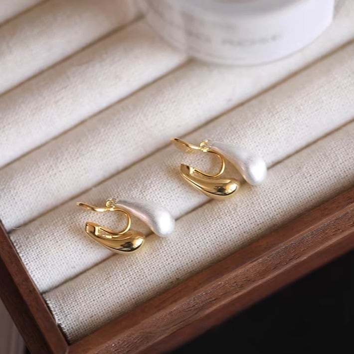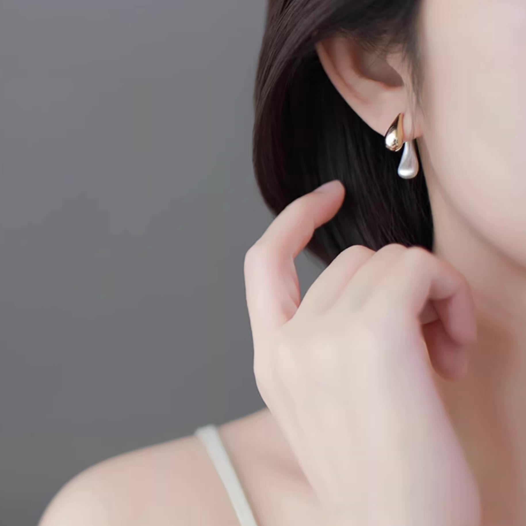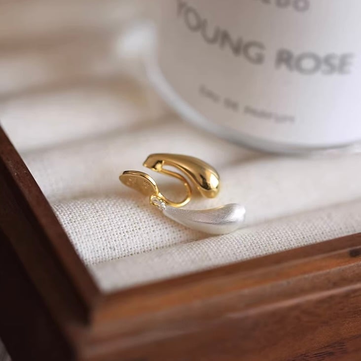 ゴールドとシルバー、異なる輝きを重ねたしずくモチーフが耳元に洗練された表情を添えるイヤーアクセサリー。