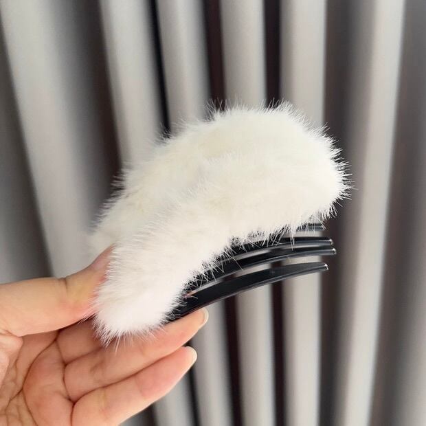 秋冬スタイルにぴったりの、ふんわり柔らかなファー素材の大きめヘアクリップ。
