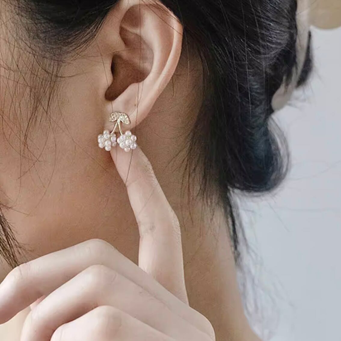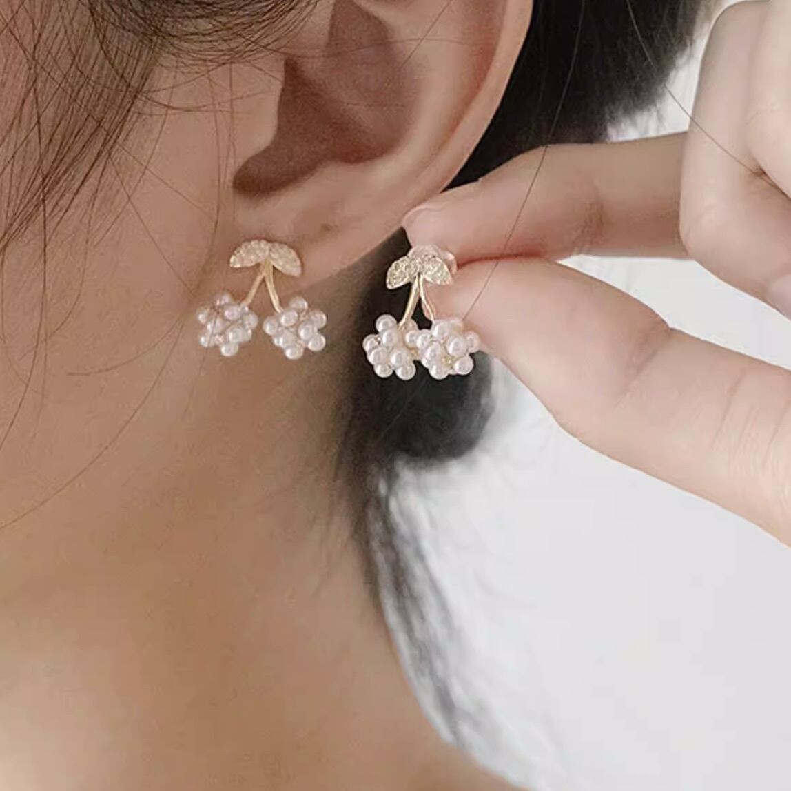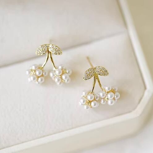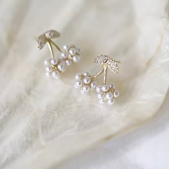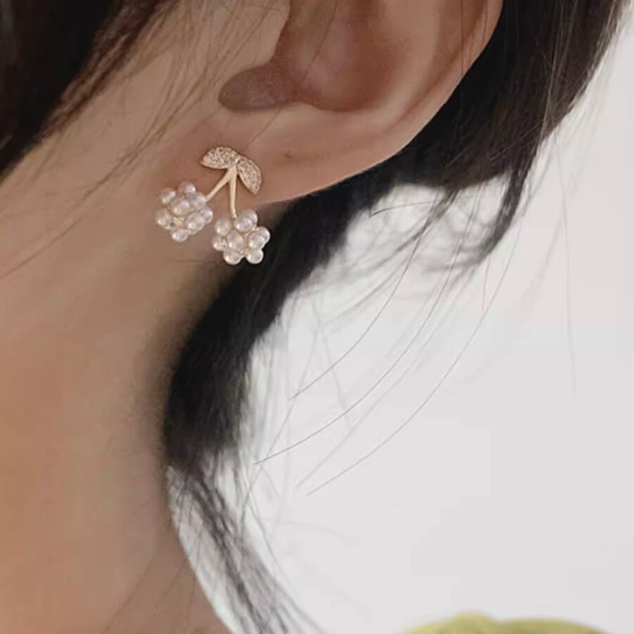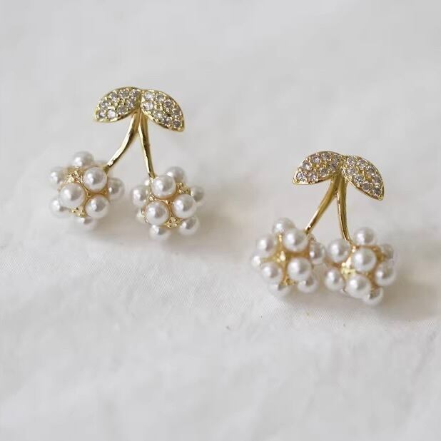 可憐に実るチェリーをモチーフに、小粒パールを丁寧に束ねた愛らしいピアス。