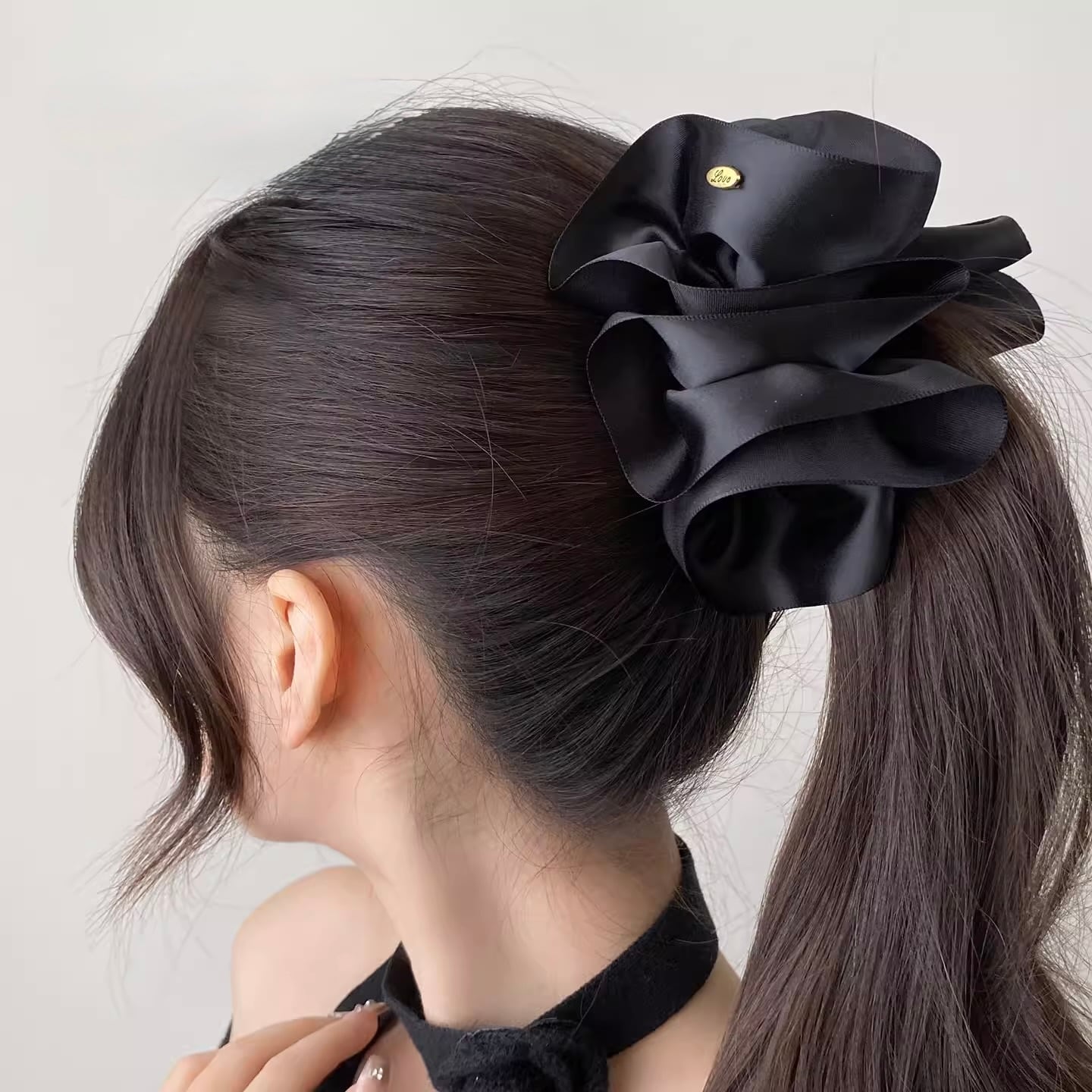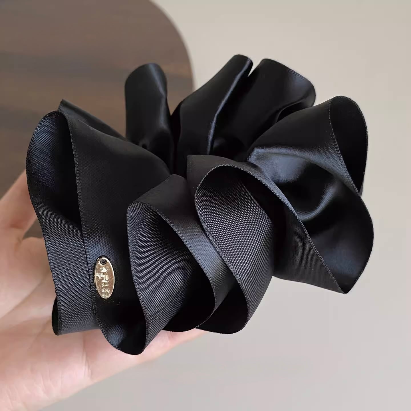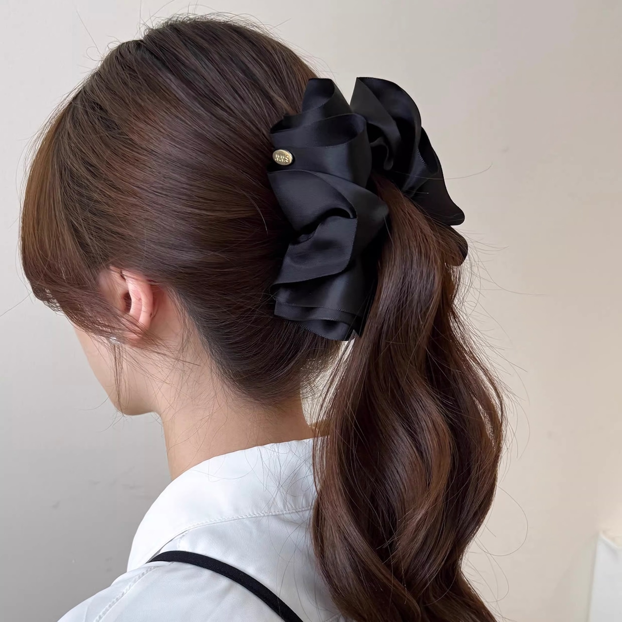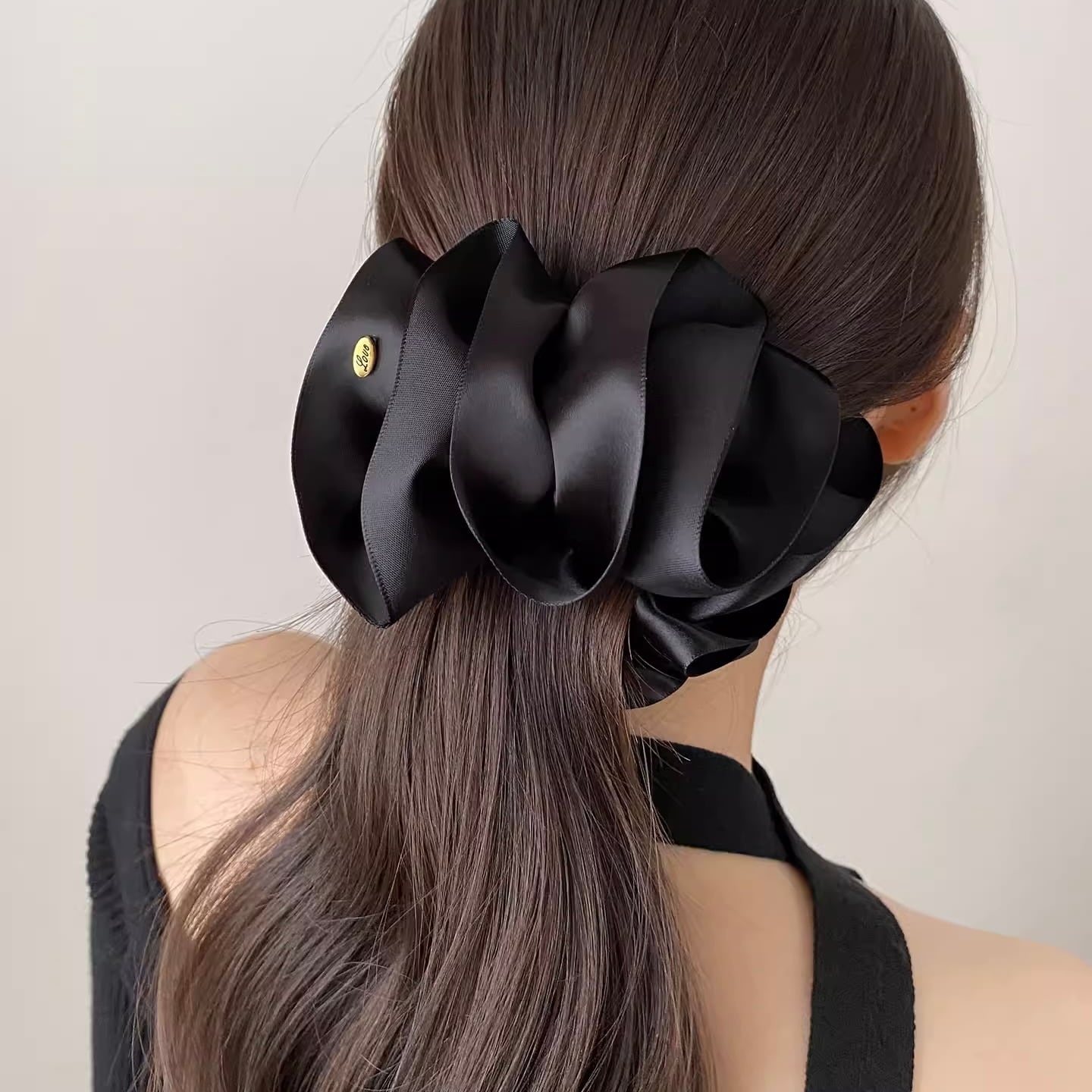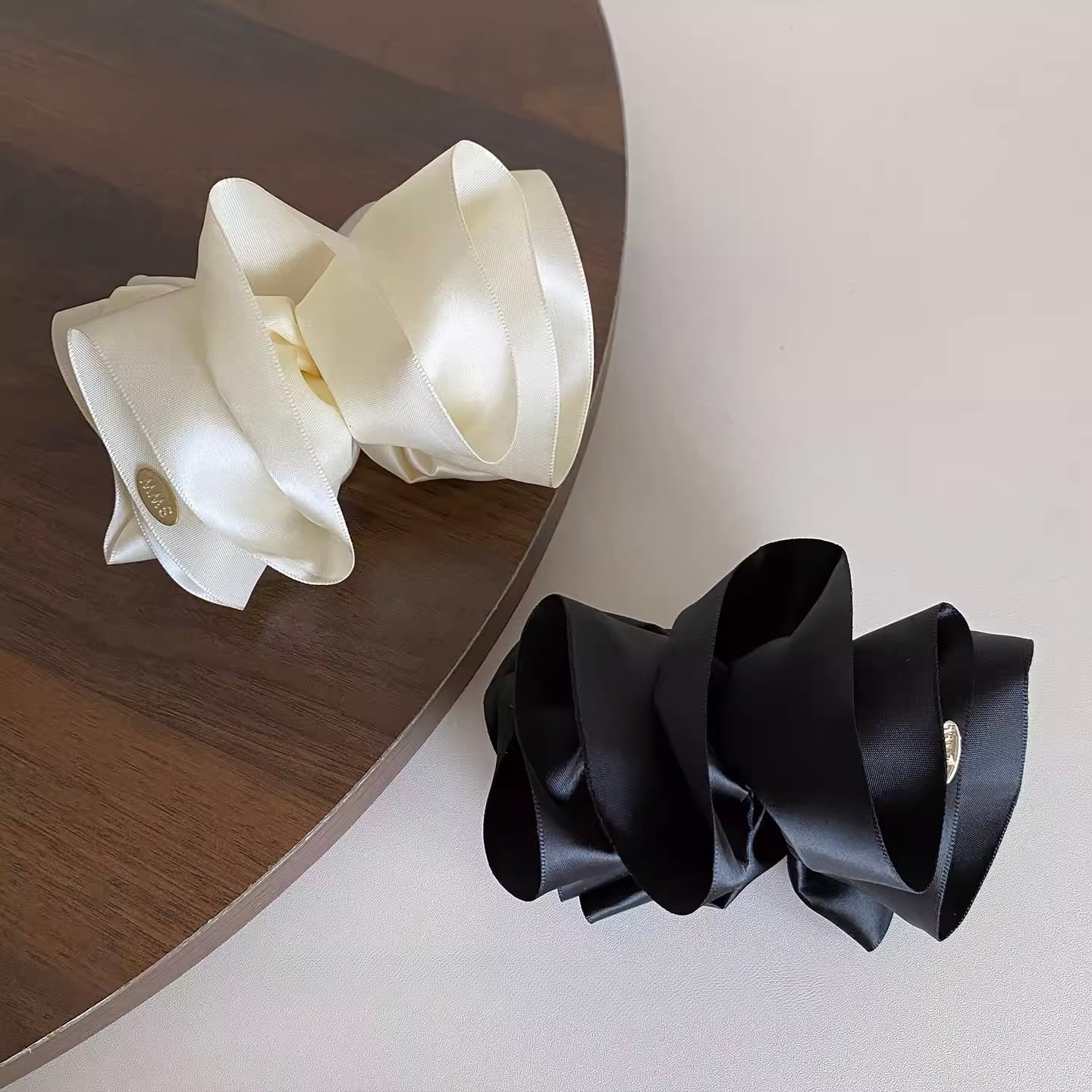 艶やかなサテン素材で仕立てた、存在感のあるビッグリボンのバナナクリップ。