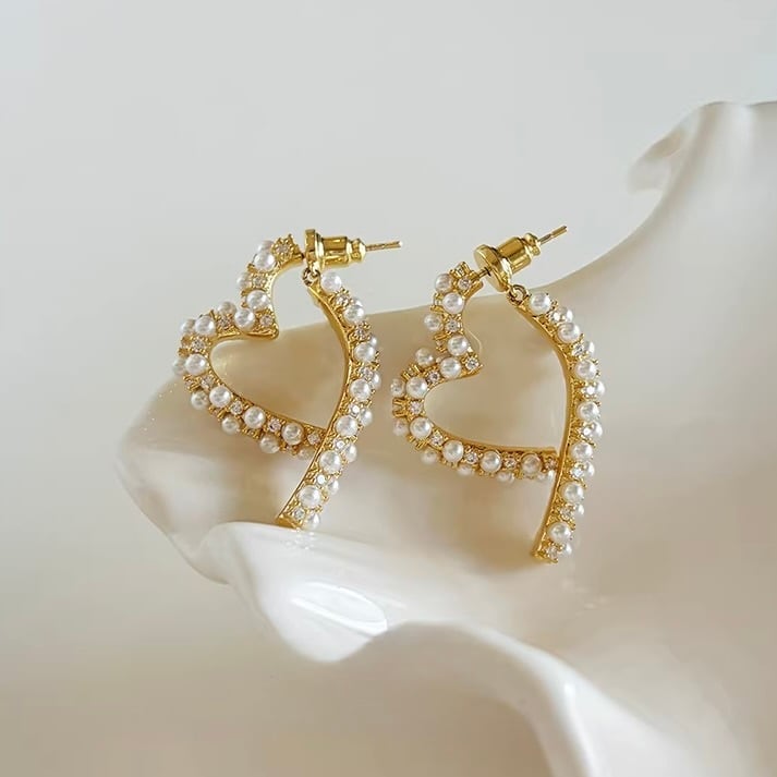 繊細なパールラインで描かれたハートモチーフが、耳元に華やかな輝きを添えます。