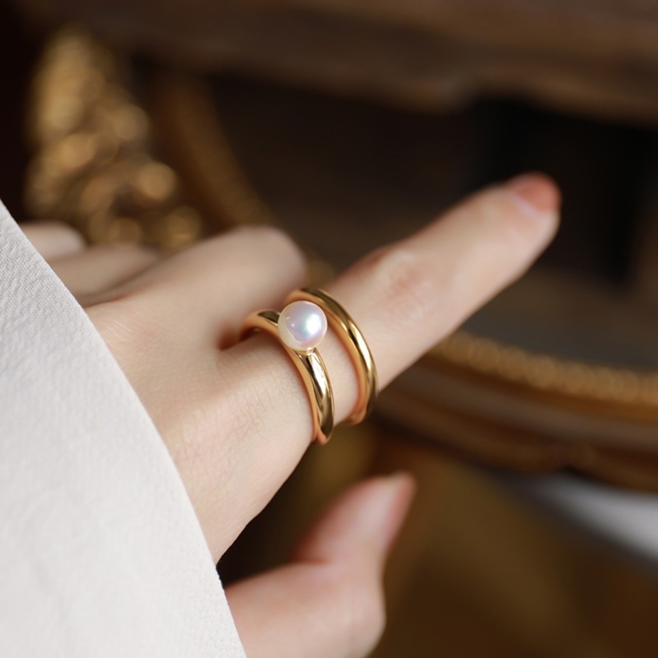 シンプルパールダブルリング:179