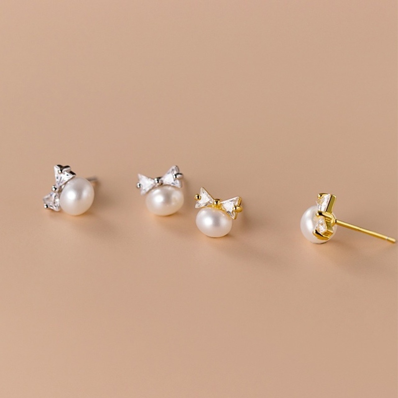 ジルコニアリボンパールピアス(シルバー・ゴールド):173