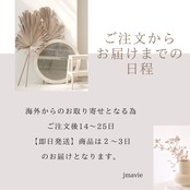商品の発送は、ご注文からお届けまでに14日〜25日ほどお時間を頂戴しております。