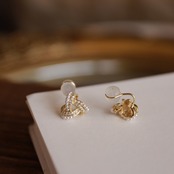 繊細な三角フォルムに上品な艶を放つパールと、輝きを添えるジルコニアを組み合わせた、エレガントでモダンなアクセサリー。